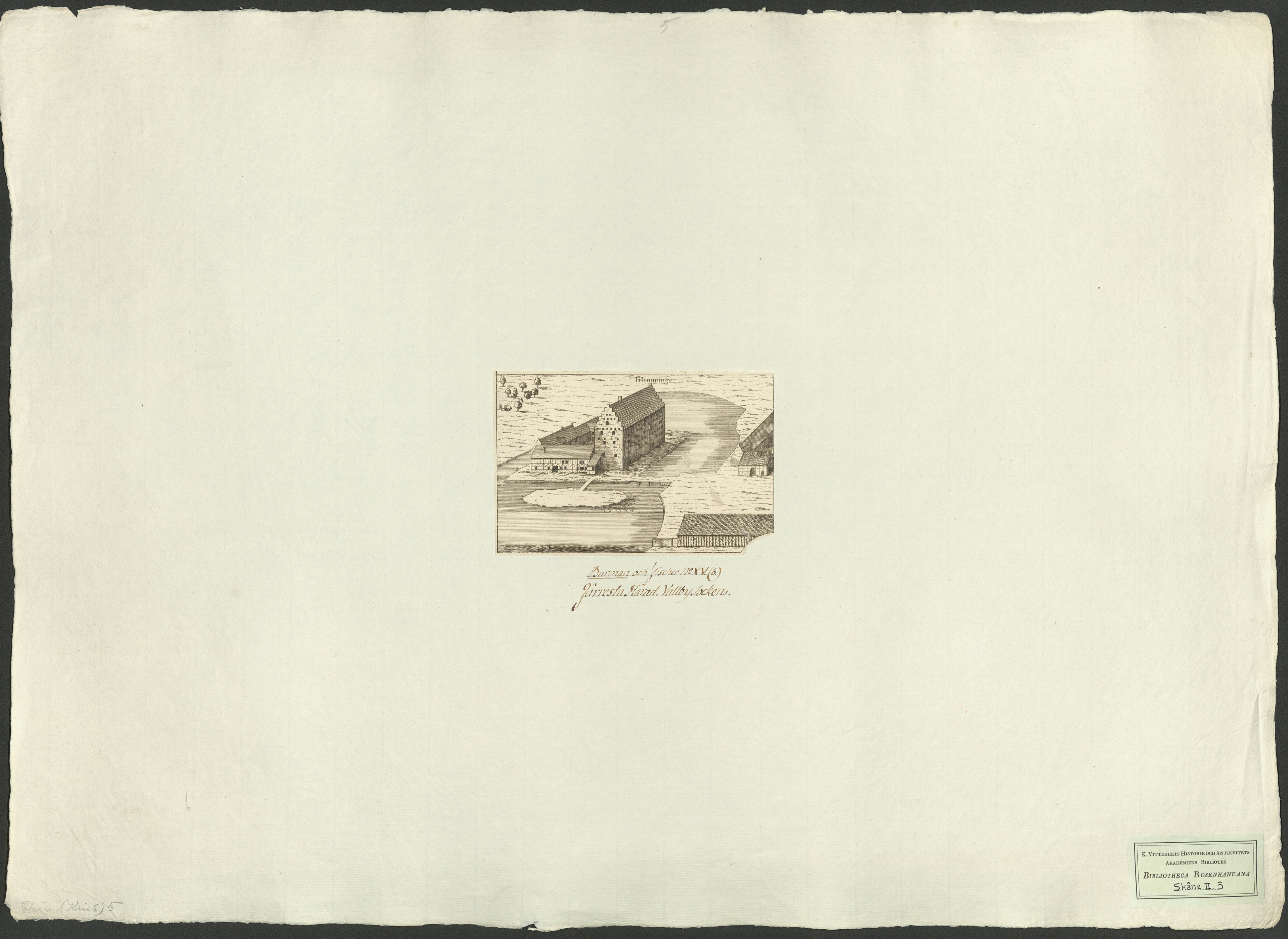Beskrivning: 1 grafiskt bl. : Teckning i fågelperspektiv av slottsanläggningen.