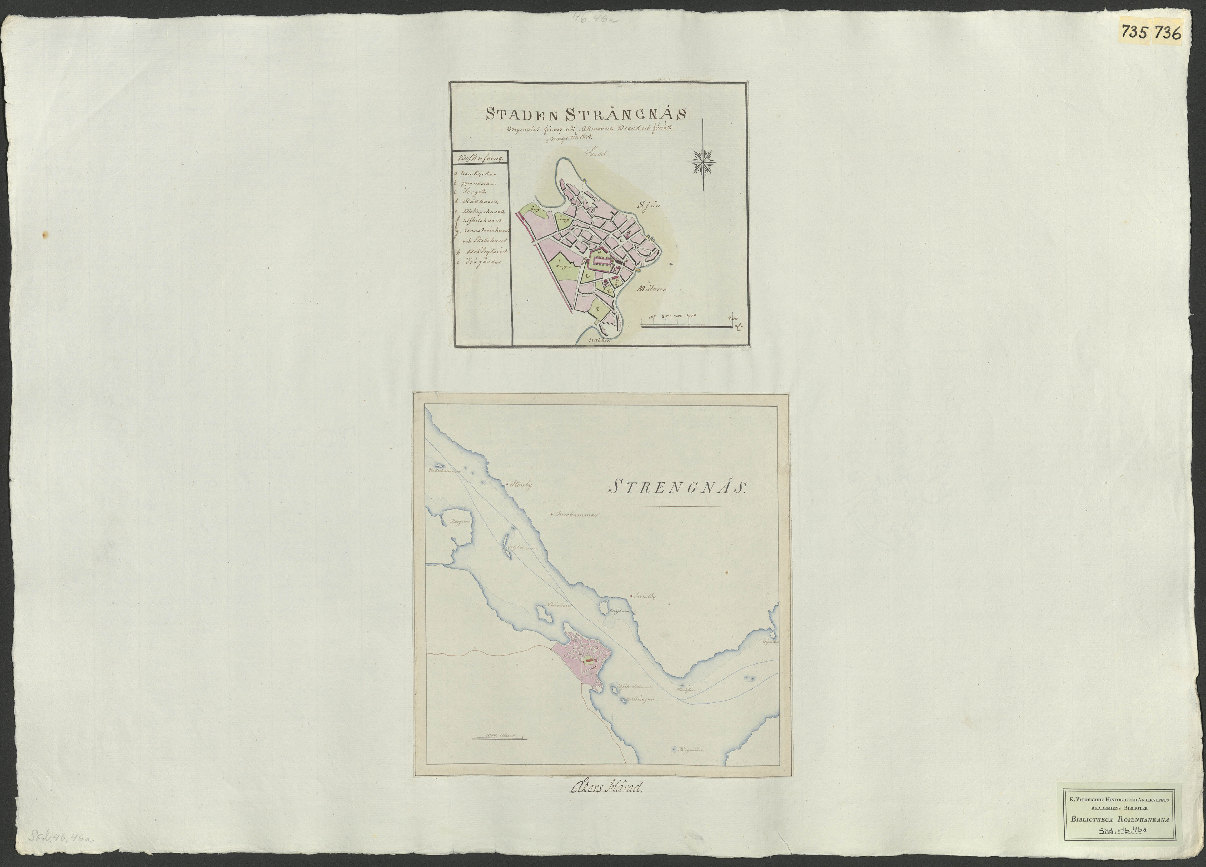 Beskrivning: 1 handritad karta : Visar stadskvarteren. Teckenförklaring. Nordpil.