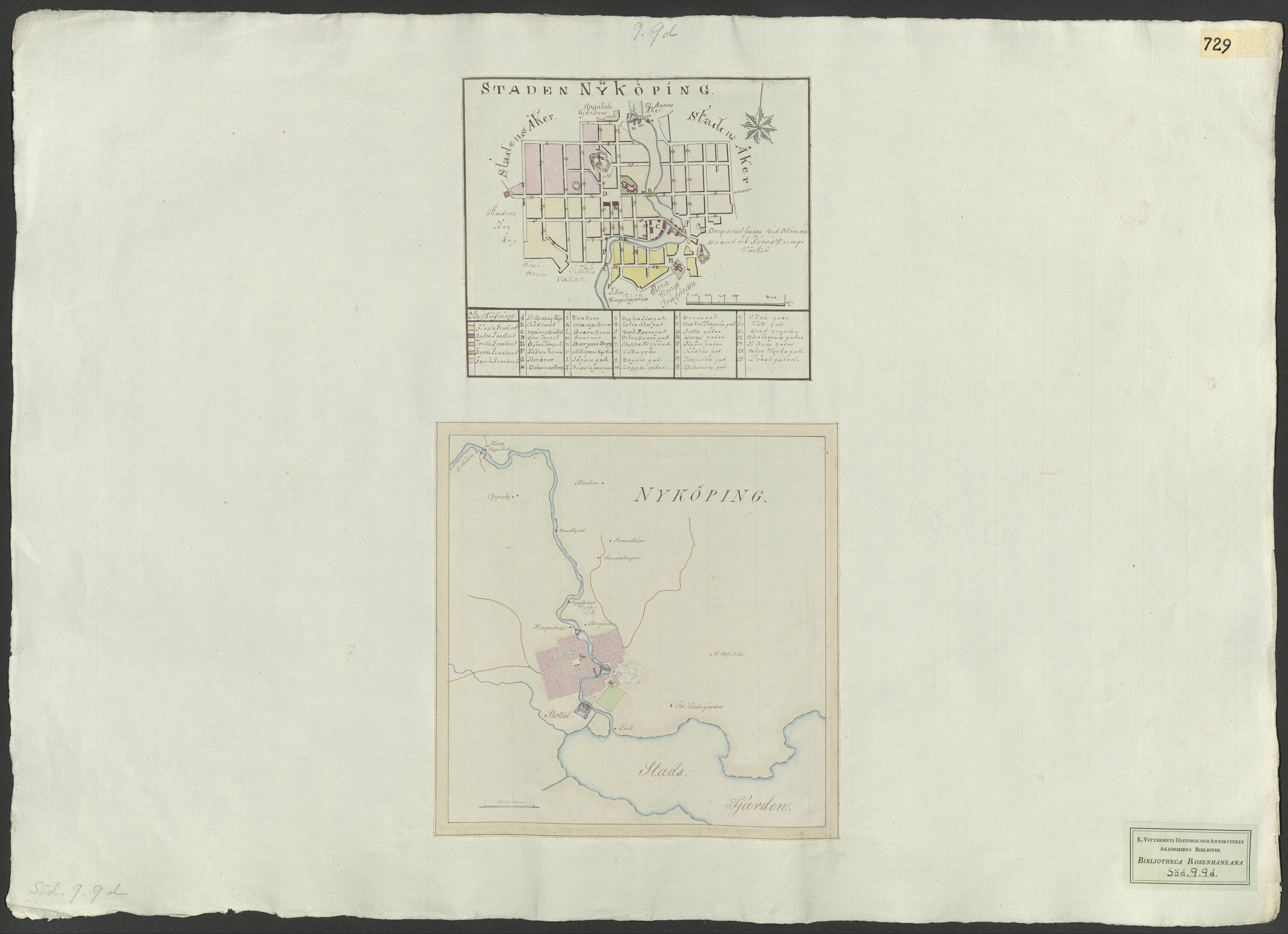 Beskrivning: 1 handritad karta : Visar kvarteren. Teckenförklaring. Skala ca 1:8 000.