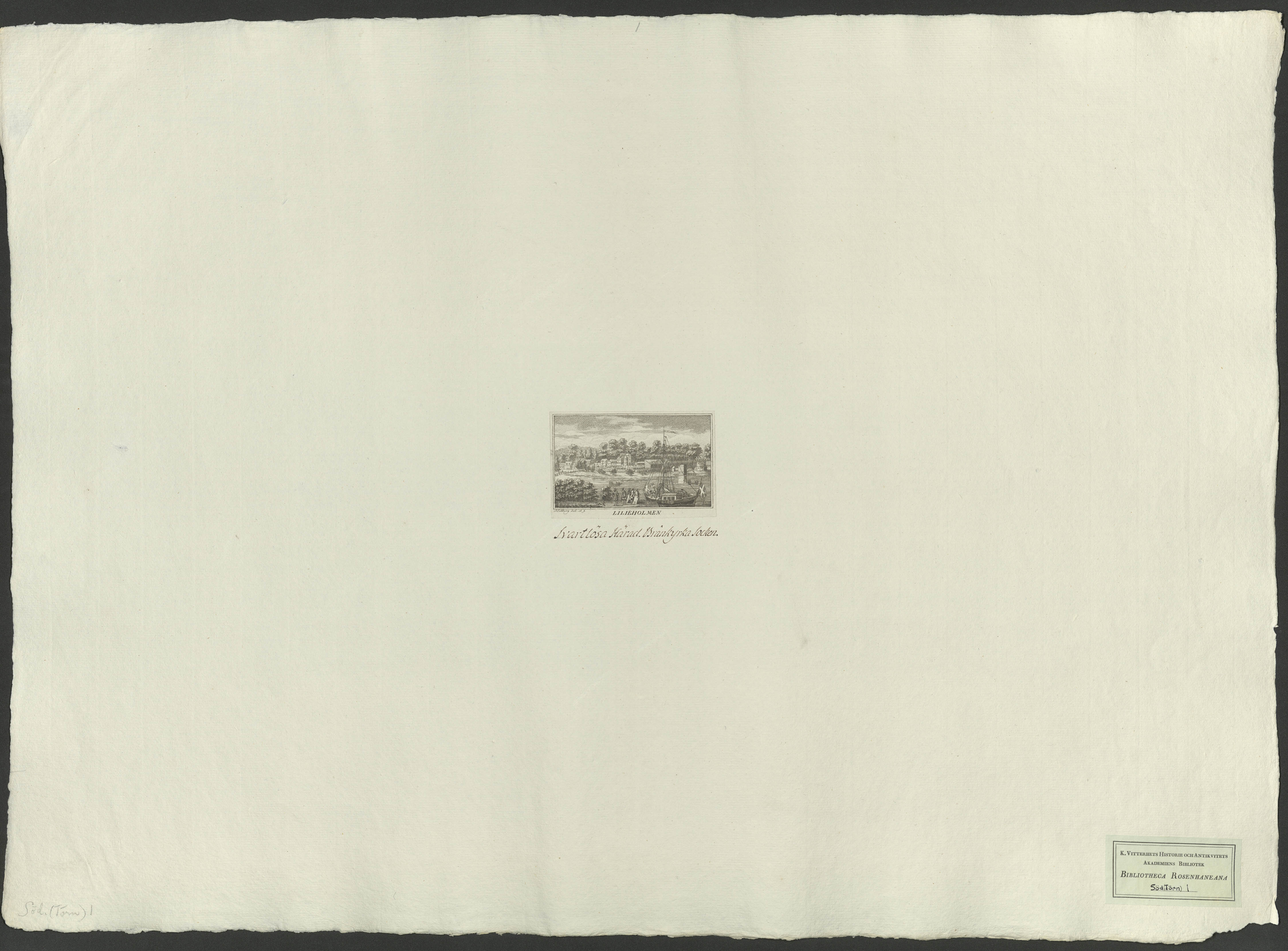 Beskrivning: 1 grafiskt bl. : Landskapsvy vid Mälaren. J. Gillberg del et S