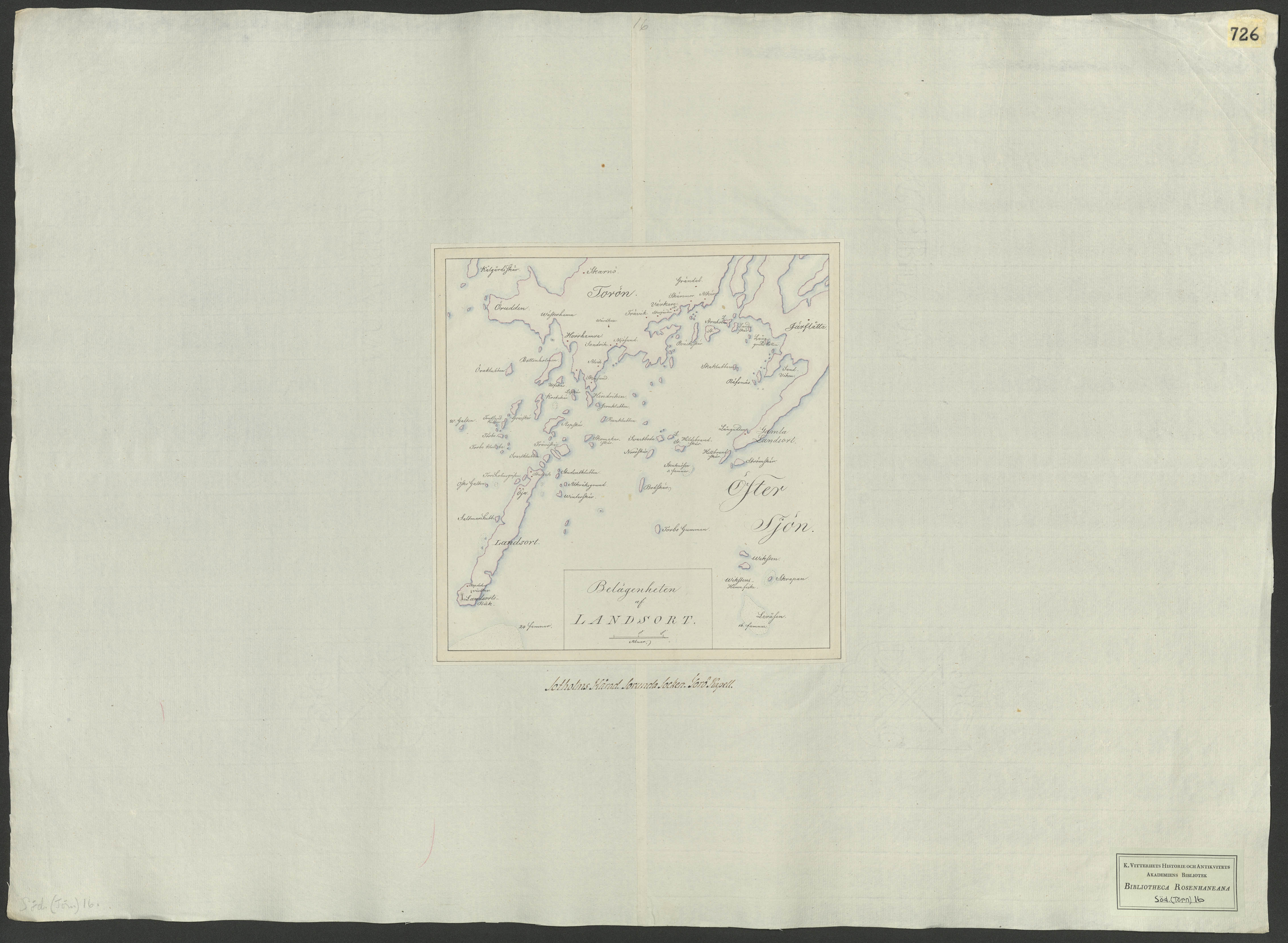 Beskrivning: 1 handritad karta : Visar arkipelagen kring Torö och Landsort.