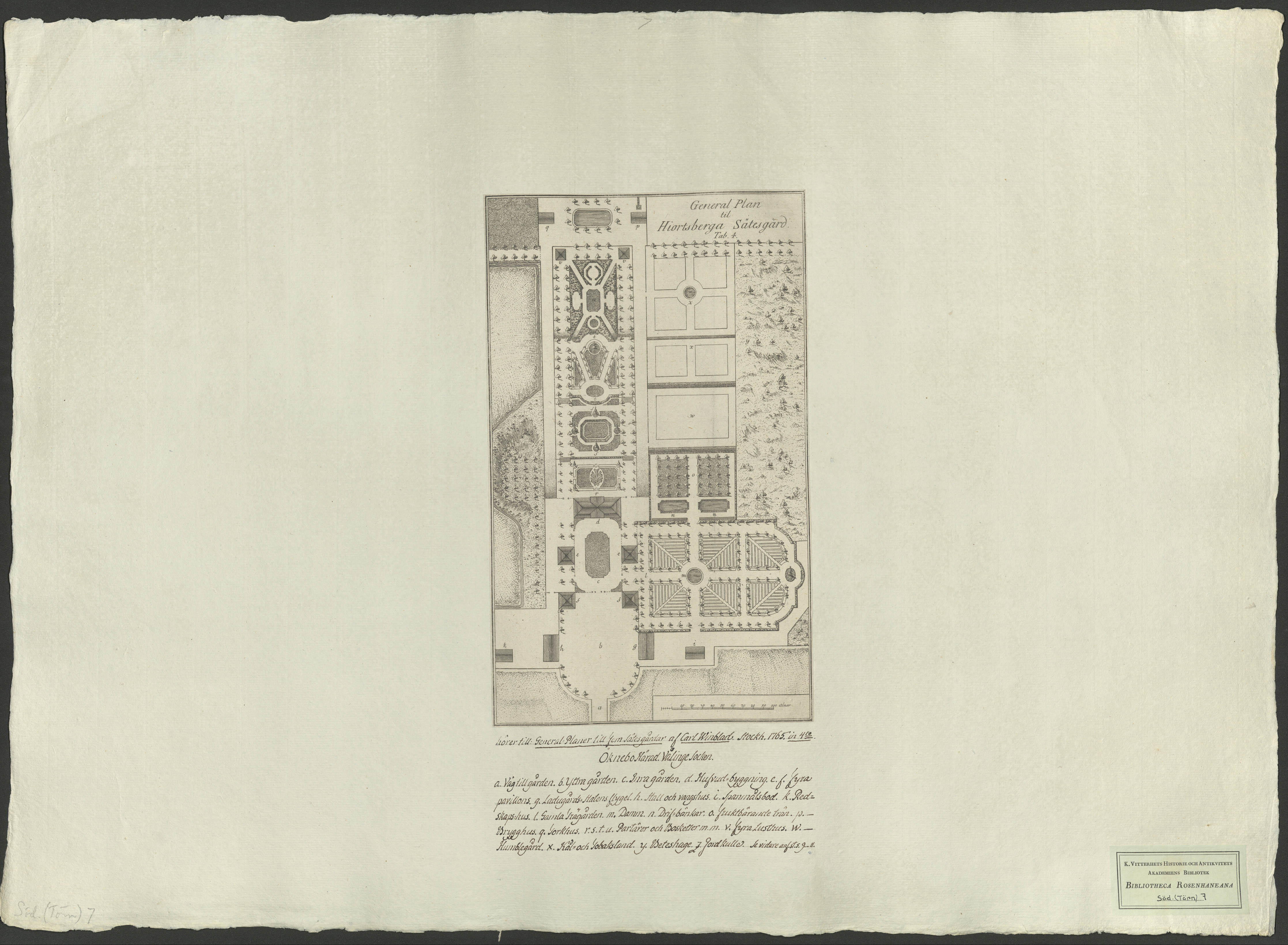 Beskrivning: 1 grafiskt bl. : Plan över säteriet och trädgården.