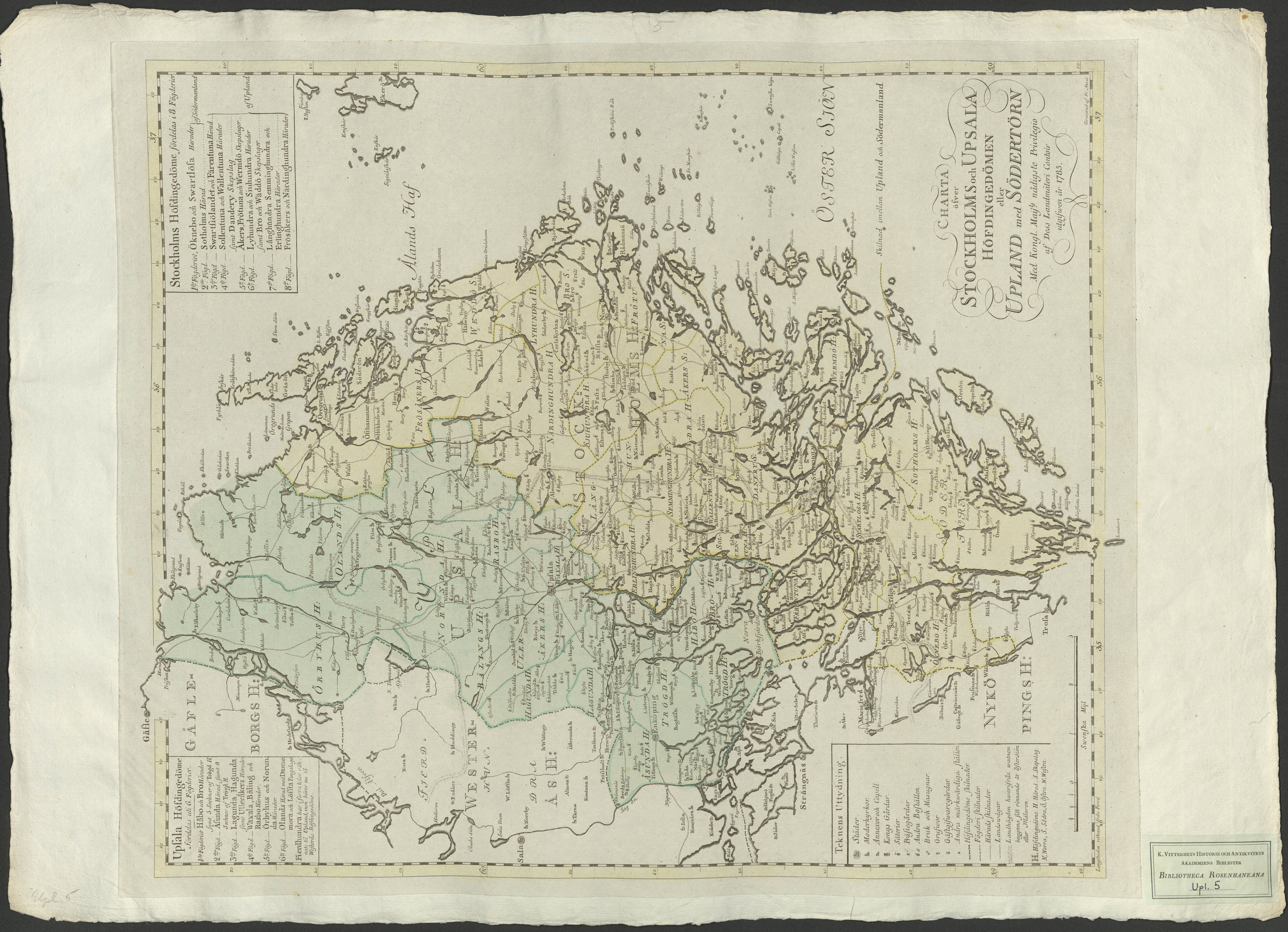 Charta öfwer Stockholms och Upsala Höfdingedömen eller Upland med Södertörn..[Kartografiskt material]