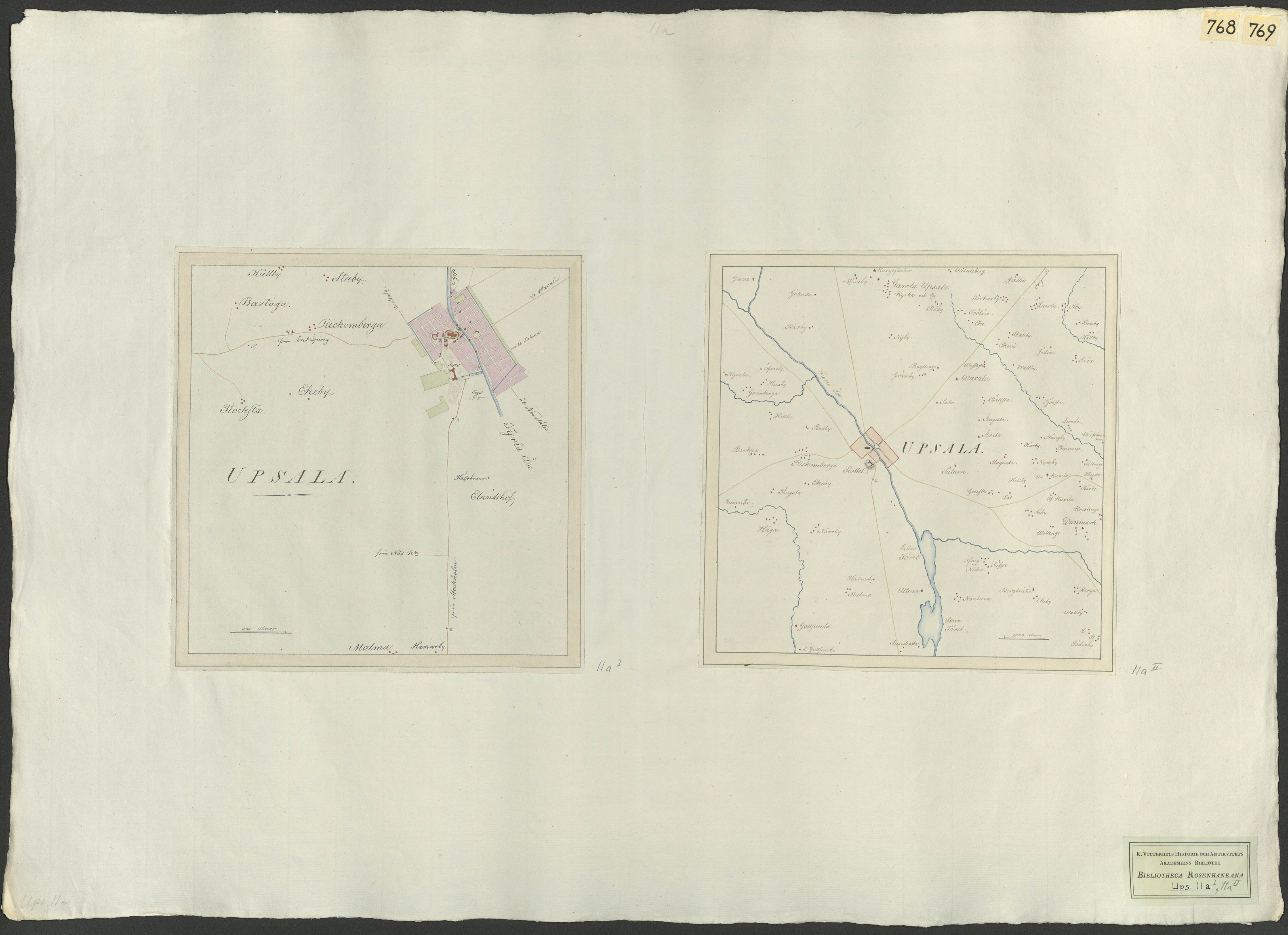 Beskrivning: 1 handritad karta : Uppsala med omnejd.