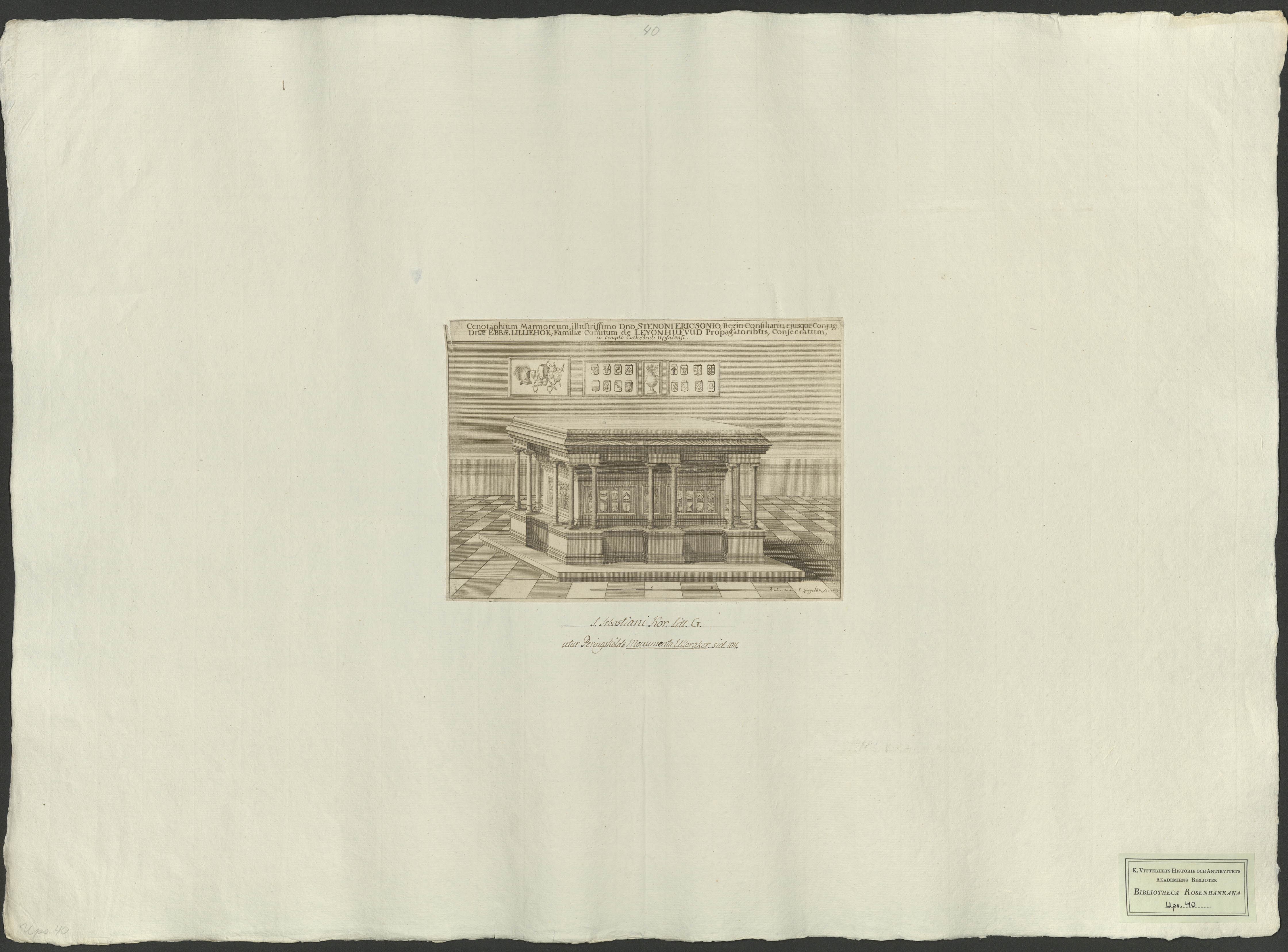 Beskrivning: 1 grafiskt bl. : "S. Sebastiani kor. Litt. G. Utur Peringskölds Monumenta ulleraker. Sid. 104." I. Spiegelbr sc 1709