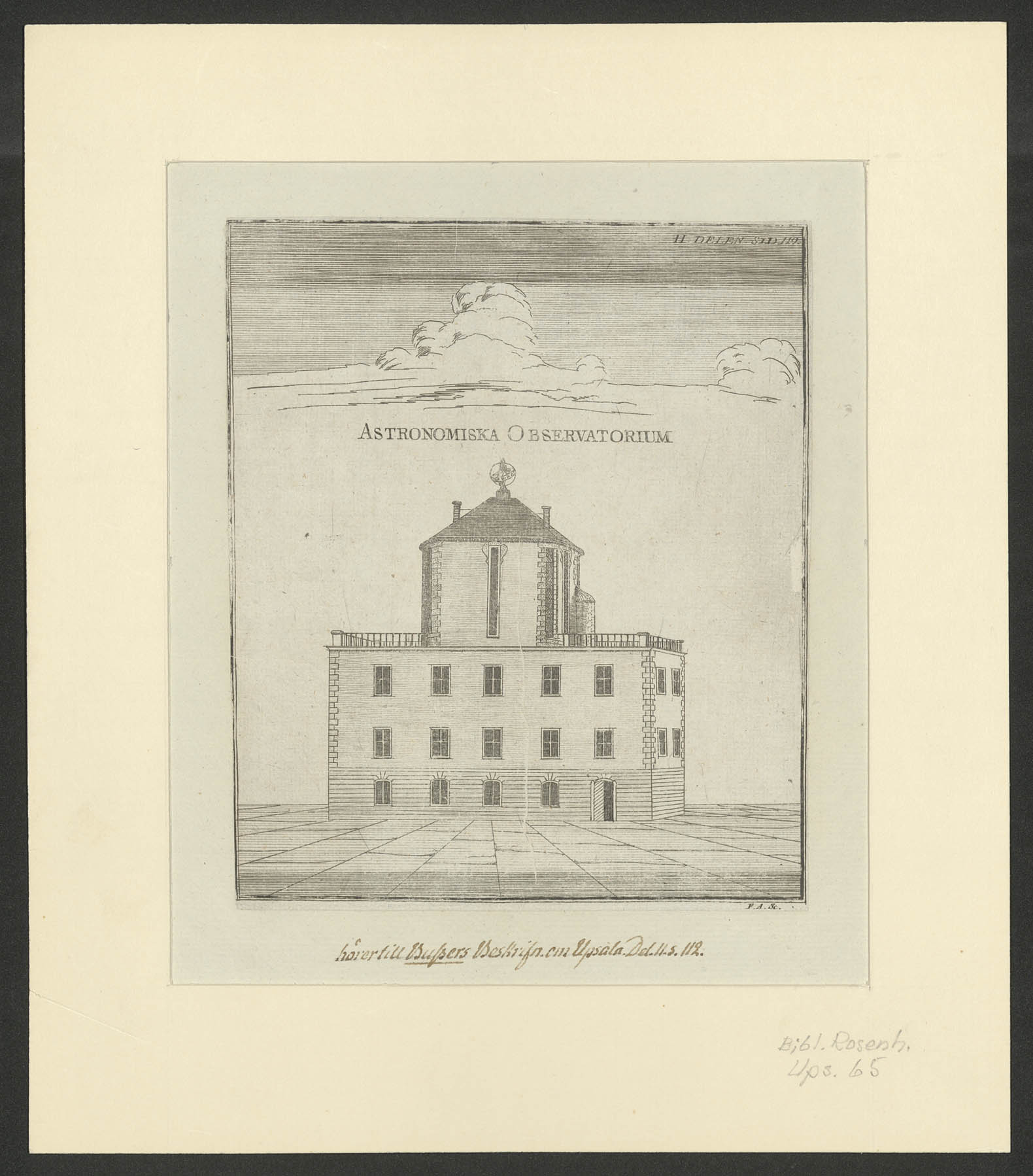 Beskrivning: 1 grafiskt bl. : Perspektivteckning av byggnaden. F. A. Sc.