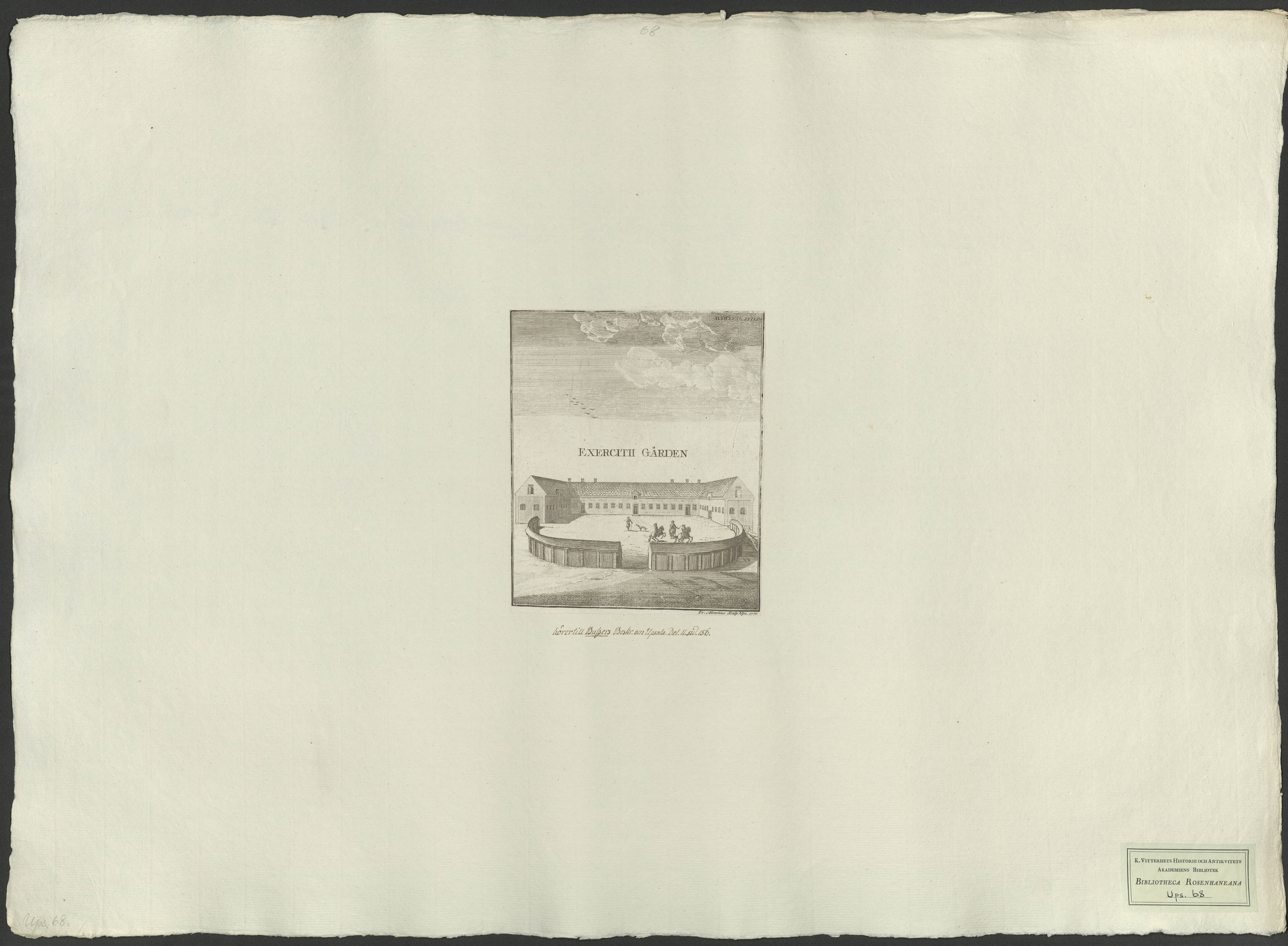 Beskrivning: 1 grafiskt bl. : Perspektivteckning av byggnaden. "Fr. Akrelius sculp Ups. 1770."