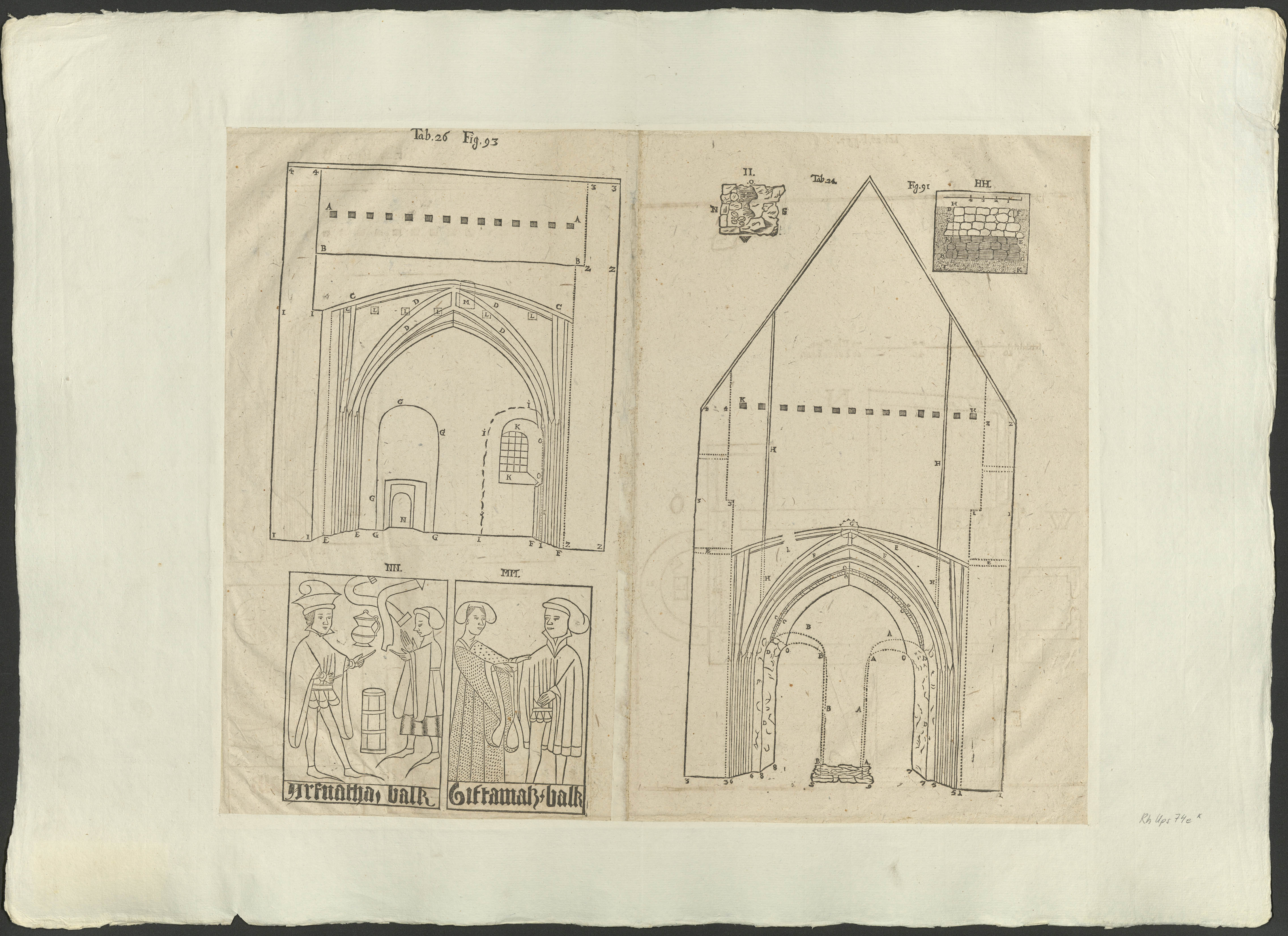 Beskrivning: 1 grafiskt bl. : Tvärsektion av kyrkorummet.