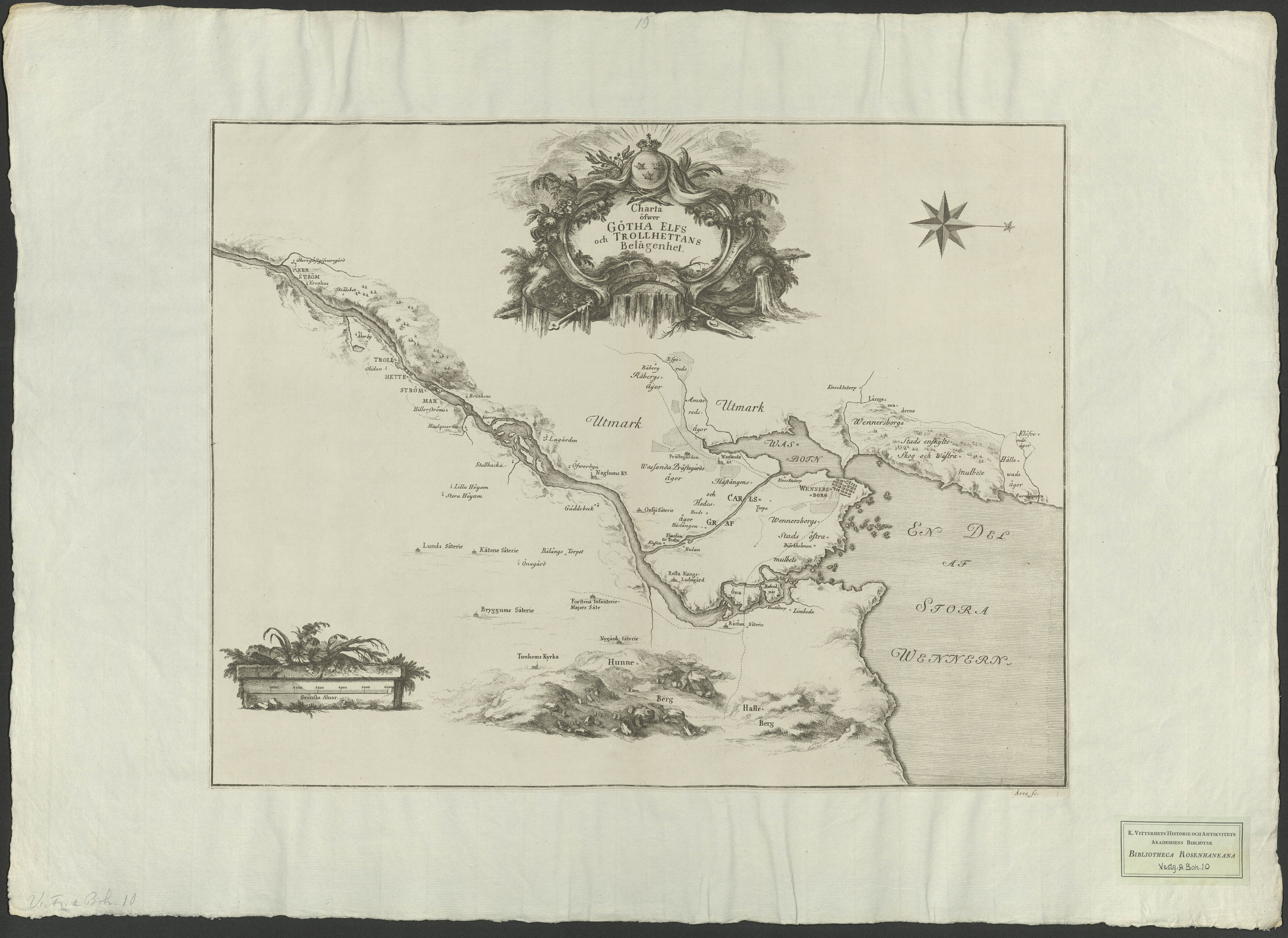 Charta öfwer Götha Elfs och Trollhettans belägenhet.[Kartografiskt material]