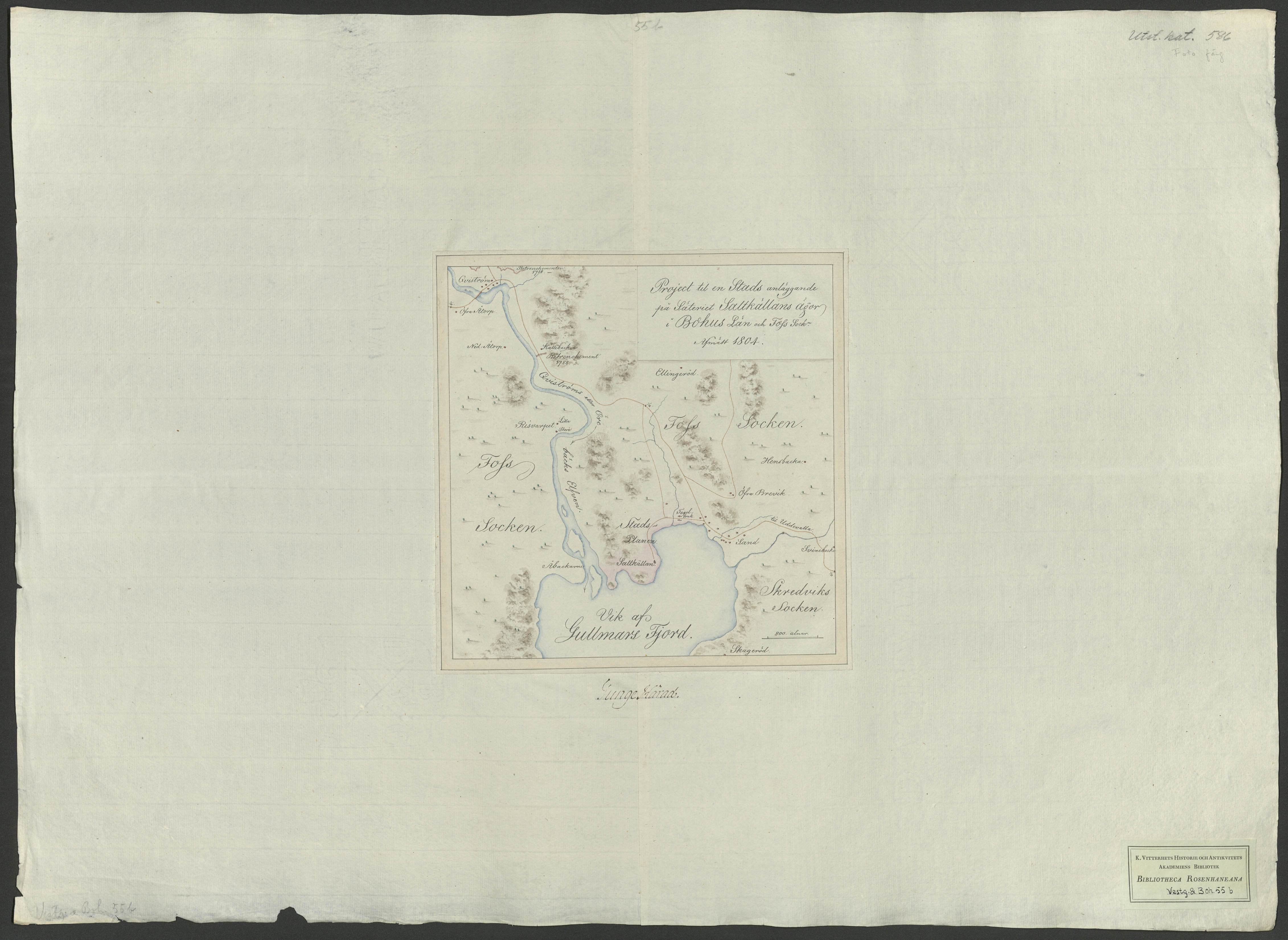 Project til en stads anläggande på säteriet Saltkällans ägor i Bohus län och Foss sockn. Afmätt 1804..[Kartografiskt material]