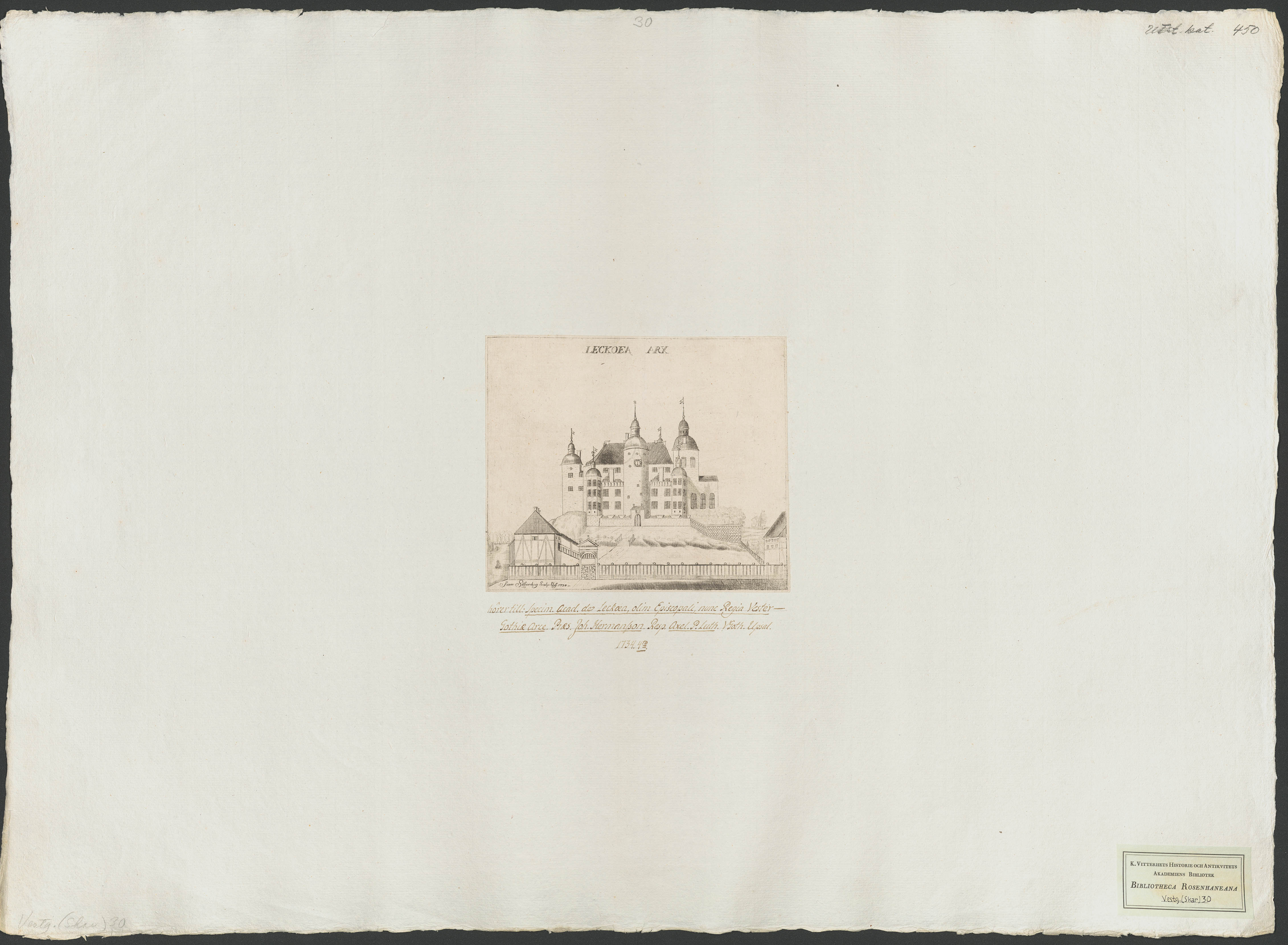 Beskrivning: 1 grafiskt bl. : Perspektivteckning av Läckö slott. Jonas Silfwerling sculp Ups 1734