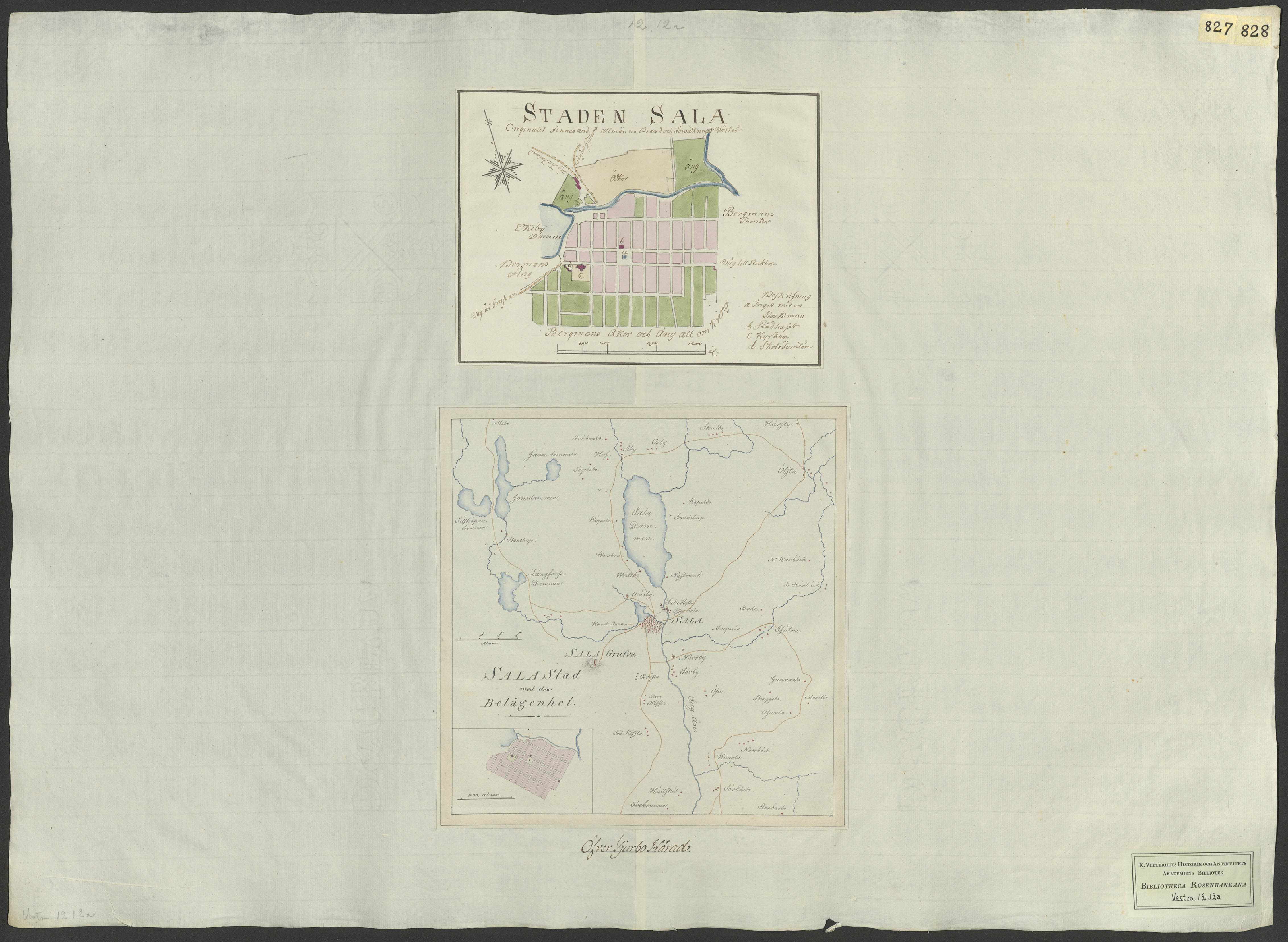 Beskrivning: 1 handritad karta : Visar stadskvarteren och stadens åker och äng. Teckenförklaring. Nordpil.