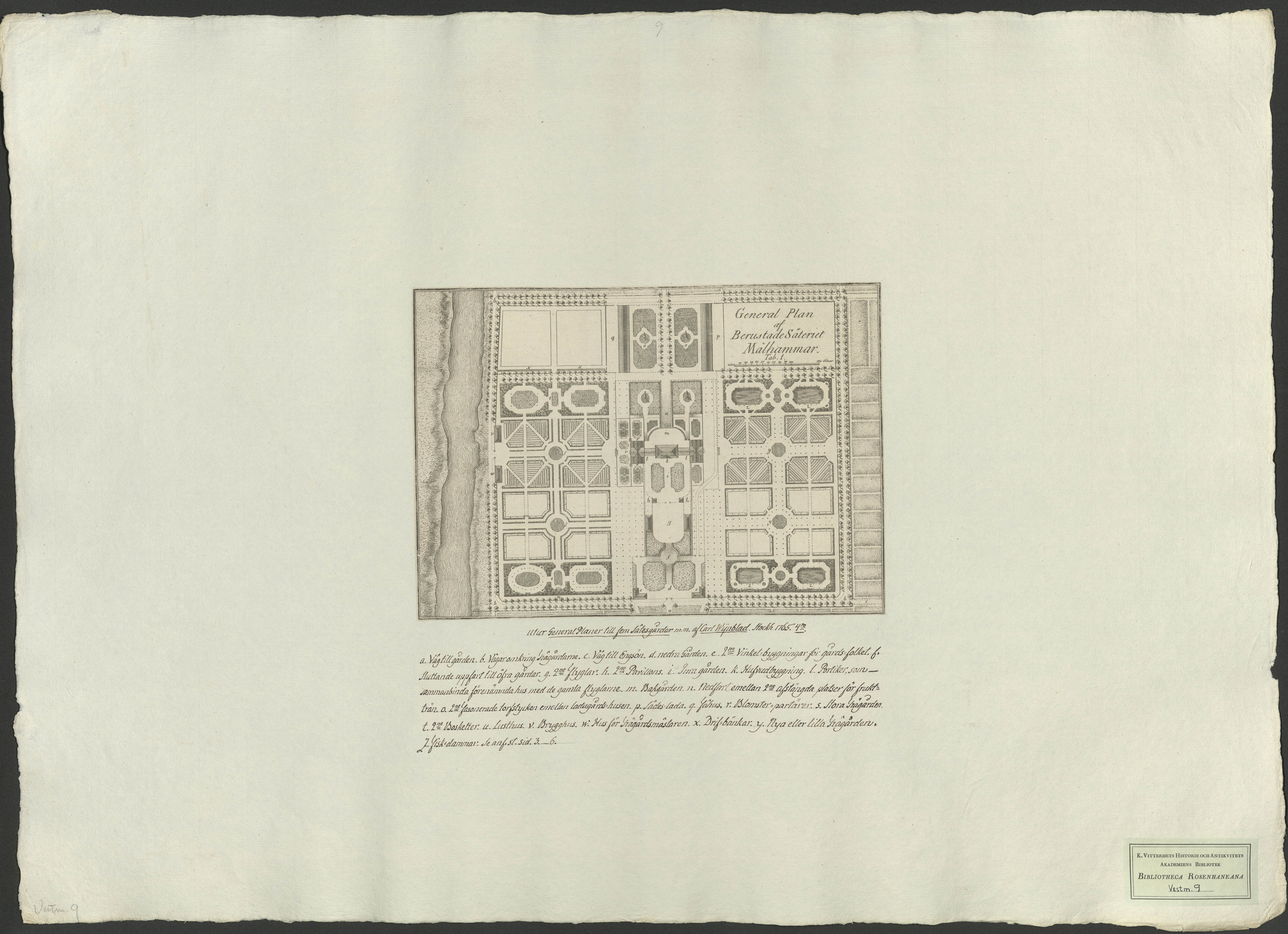 Beskrivning: 1 grafiskt bl. : Plan över sätesgården och trädgården.