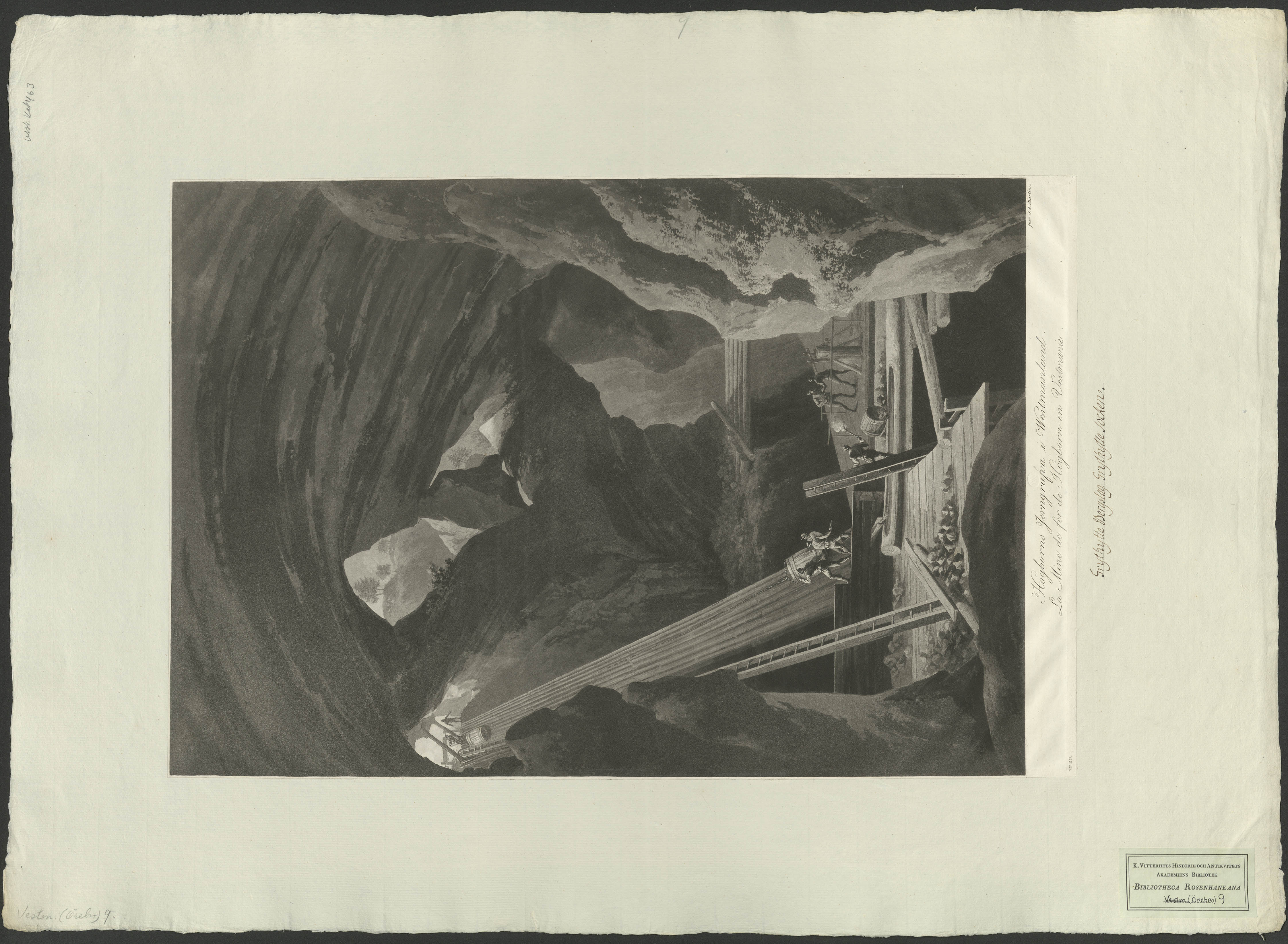 Beskrivning: 1 grafiskt bl. : Interiör från gruvan. par J. F. Martin