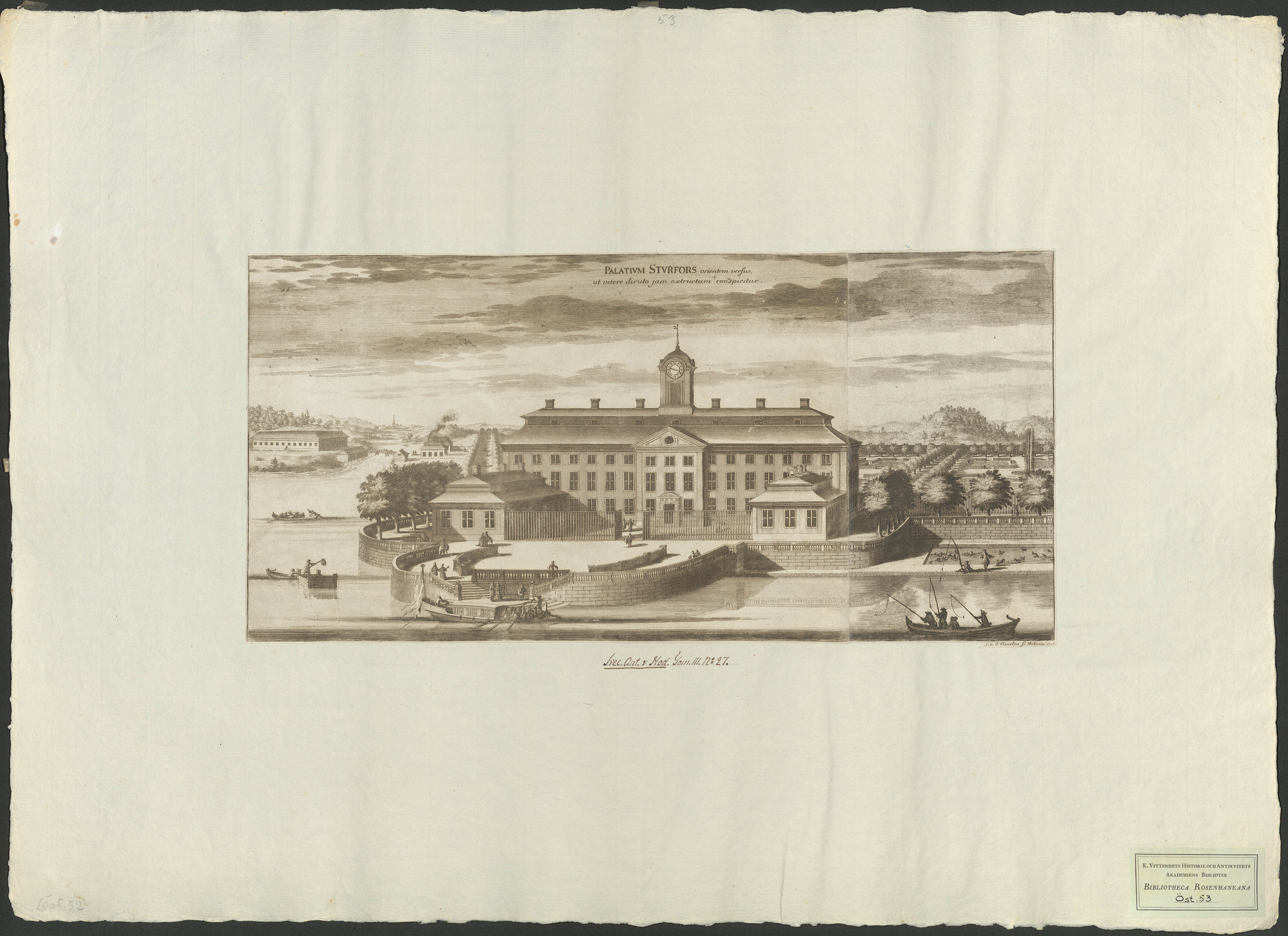 Beskrivning: 1 tryckt ark : Bilden föreställer Sturefors slott efter ombyggnaden 1704 J. v. d. Aveelen sc. Holmiæ 1710.