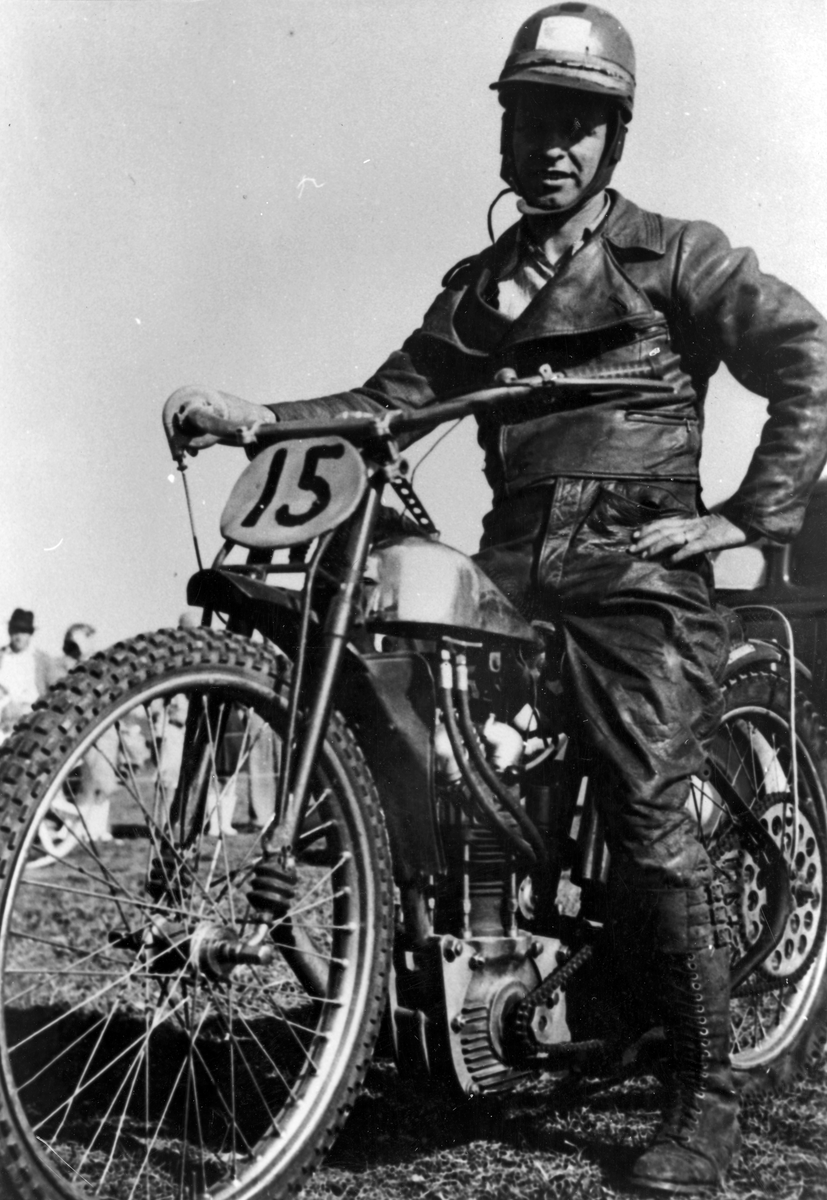 Sven Falkby i skinande blankt skinnställ, klar för start i en landskamp mellan Sverige och Norge 20/10 1949.