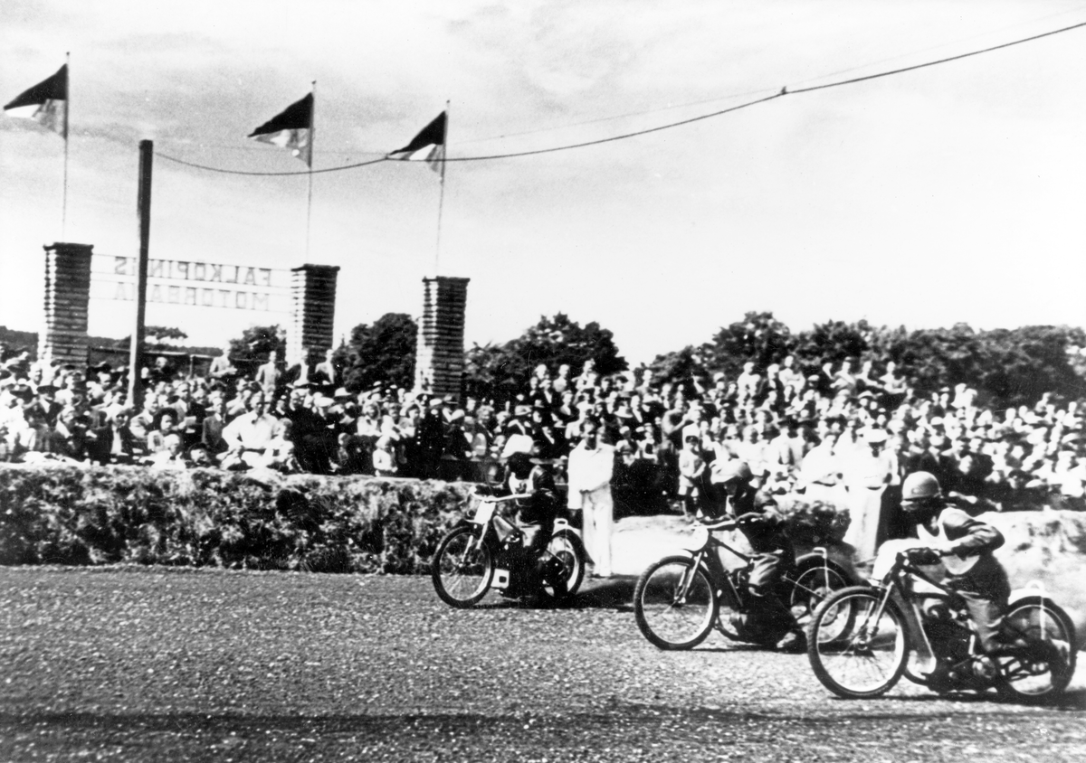 På startlinjen 19/6 1949. Fr.v. Einar Lindqvist (Vargarna), H Anderssen (Norge), Curt Lindholm (Indianerna).