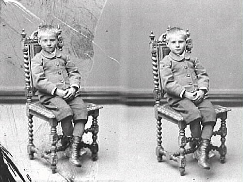 Pojkporträtt. Troligen minsta brodern av Mathildas syskon, Erik Ranch, som sitter på en stol. Han ska då vara i 6-årsåldern.