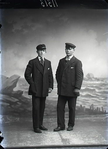 Unga män i skärmmössor, ateljébild. Beställare: John Andrén.