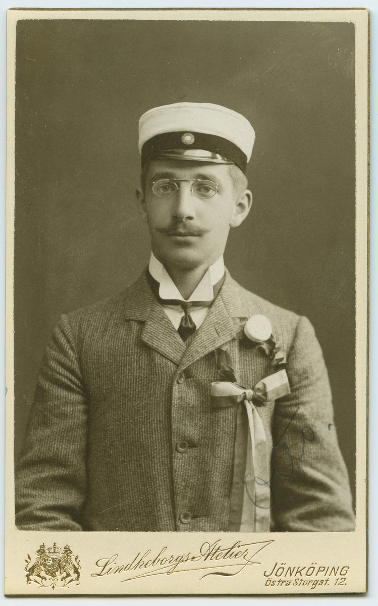 Porträtt på Otto Petersson. Född i Gävle 24 Januari år 1889 studerade i Jönköping år 1907. Vid Tullverket.