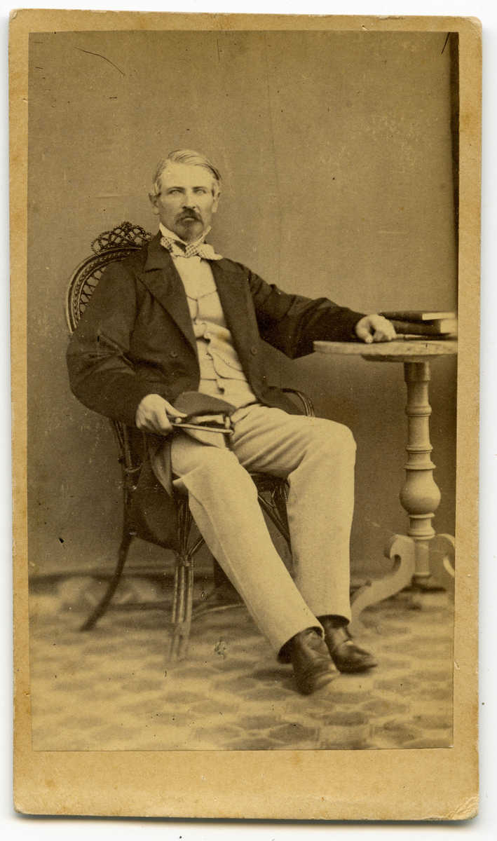 Porträtt på Kapten Gustaf Fredrik Planting- Gyllenbåge. Född15 maj år 1819 på Lilla Gavlö Dannäs socken. Död 7 augusti år 1913 på Väboholm Reftele socken. Kommissionslantmätare, regementsskrivare Ägde Väboholm.