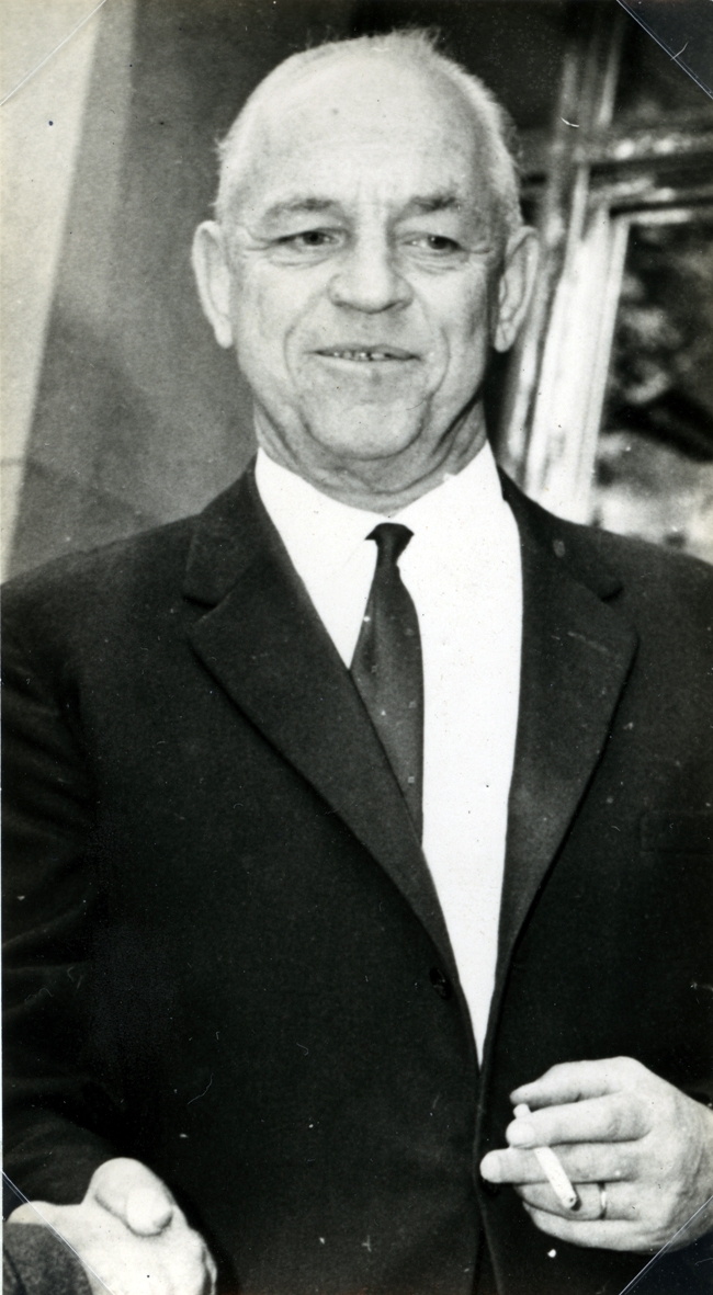 Porträtt av landsfiskal Stig Elsrud, Löttorp, som levde mellan 1906-1977. Han var född i Ljusnansberg och studerade vid Karolinska läroverket och avlade landsfiskalsexamen 1933, och innehade sedan tjänst på länsstyrelsen i Örebro.