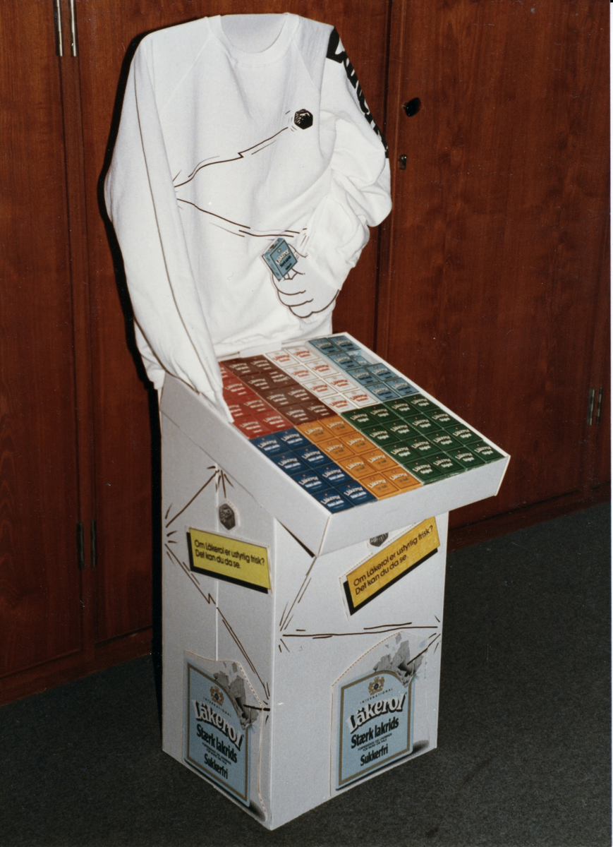 Ett sk. störtställ med Läkerolaskar. Dessa ställ är för butiksskyltning.
