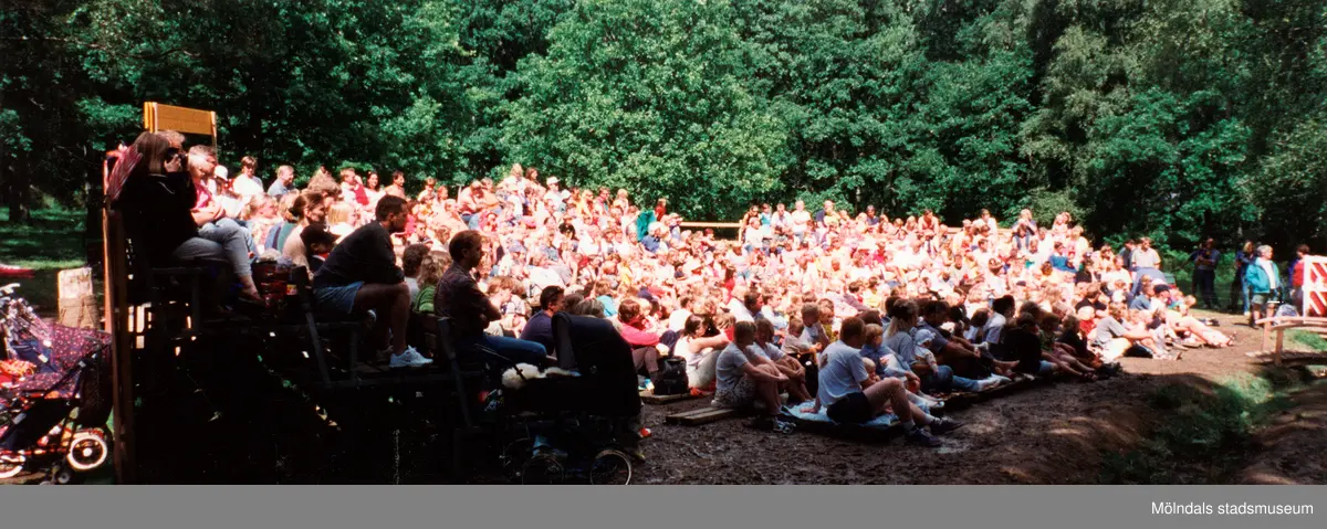 Publikrekord för sommarspelet/barnteaterföreställningen "Nalle Puh" 1998 vid Byxorna i Gunneboskogen (korsningen Christina Halls väg/John Halls väg).