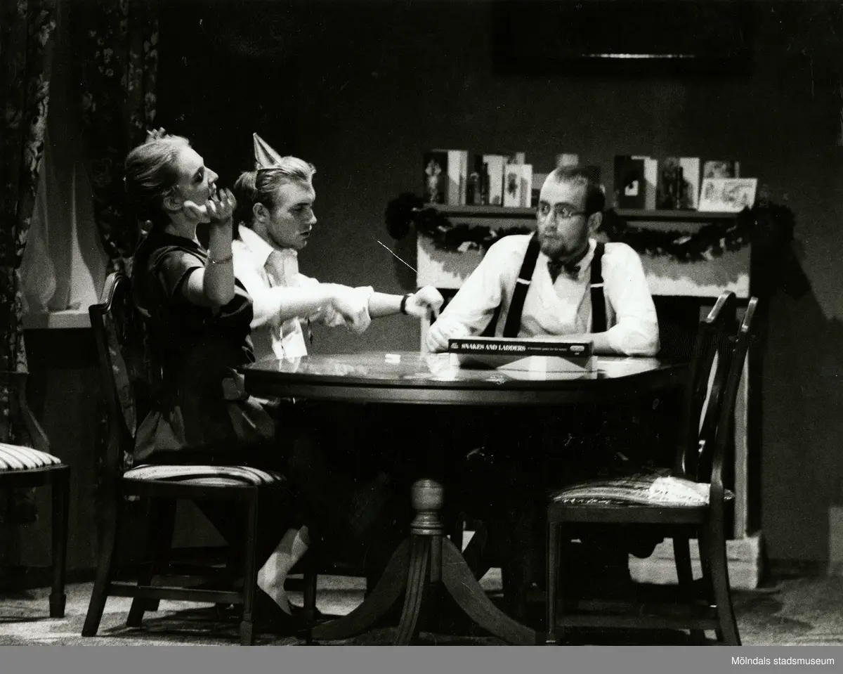 Teaterföreställning i Nya Teaterhuset, okänt årtal. Tre personer agerar i ett "vardagsrum".