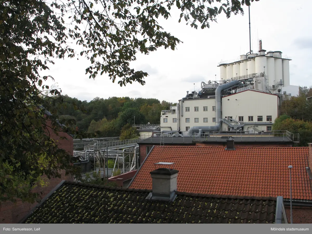 Vy från Royens gata, över hustak, mot industribyggnader vid Soabs industrianläggning i Mölndals Kvarnby, år 2007. Anläggningen användes vid fototillfället av Hexion Speciality Chemicals Sweden AB.
