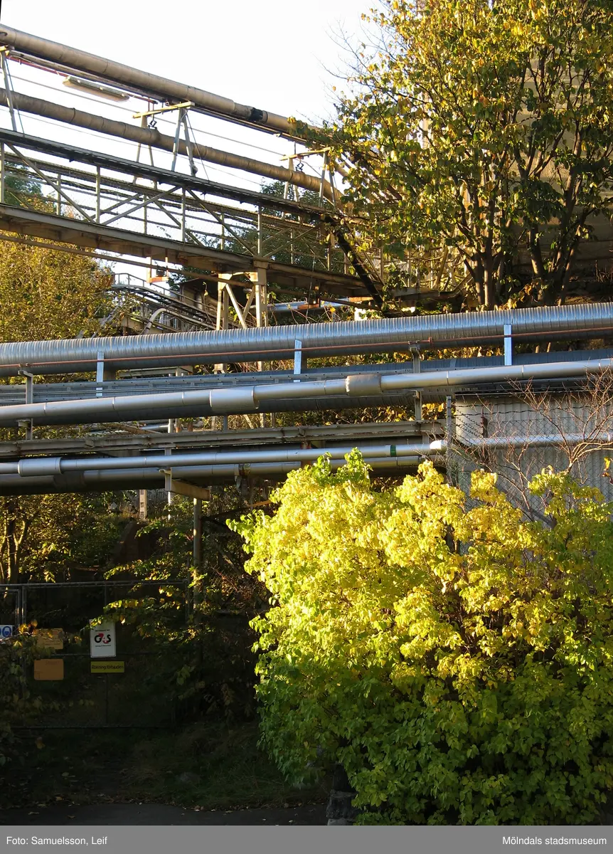 Ett flertal rör vid Soabs industrianläggning i Mölndals Kvarnby, år 2007. Anläggningen användes vid fototillfället av Hexion Speciality Chemicals Sweden AB.