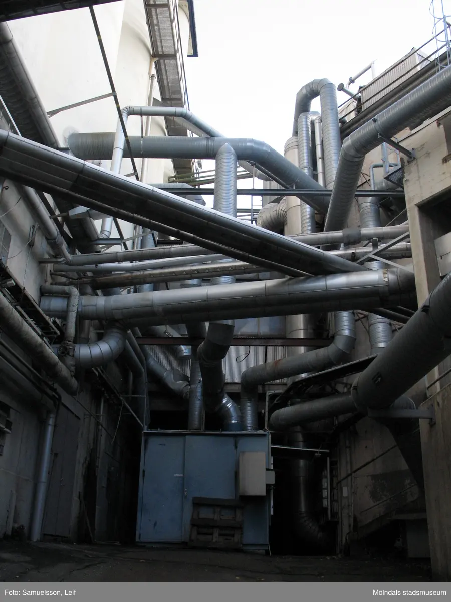 Byggnad vid Soabs industrianläggning i Mölndals Kvarnby, år 2007. På utsidan av byggnaden ses en mängd rör. Anläggningen användes vid fototillfället av Hexion Speciality Chemicals Sweden AB.