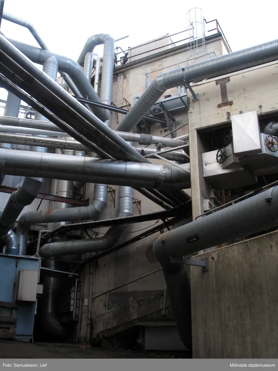 Byggnad vid Soabs industrianläggning i Mölndals Kvarnby, år 2007. På utsidan av byggnaden ses en mängd rör. Anläggningen användes vid fototillfället av Hexion Speciality Chemicals Sweden AB.