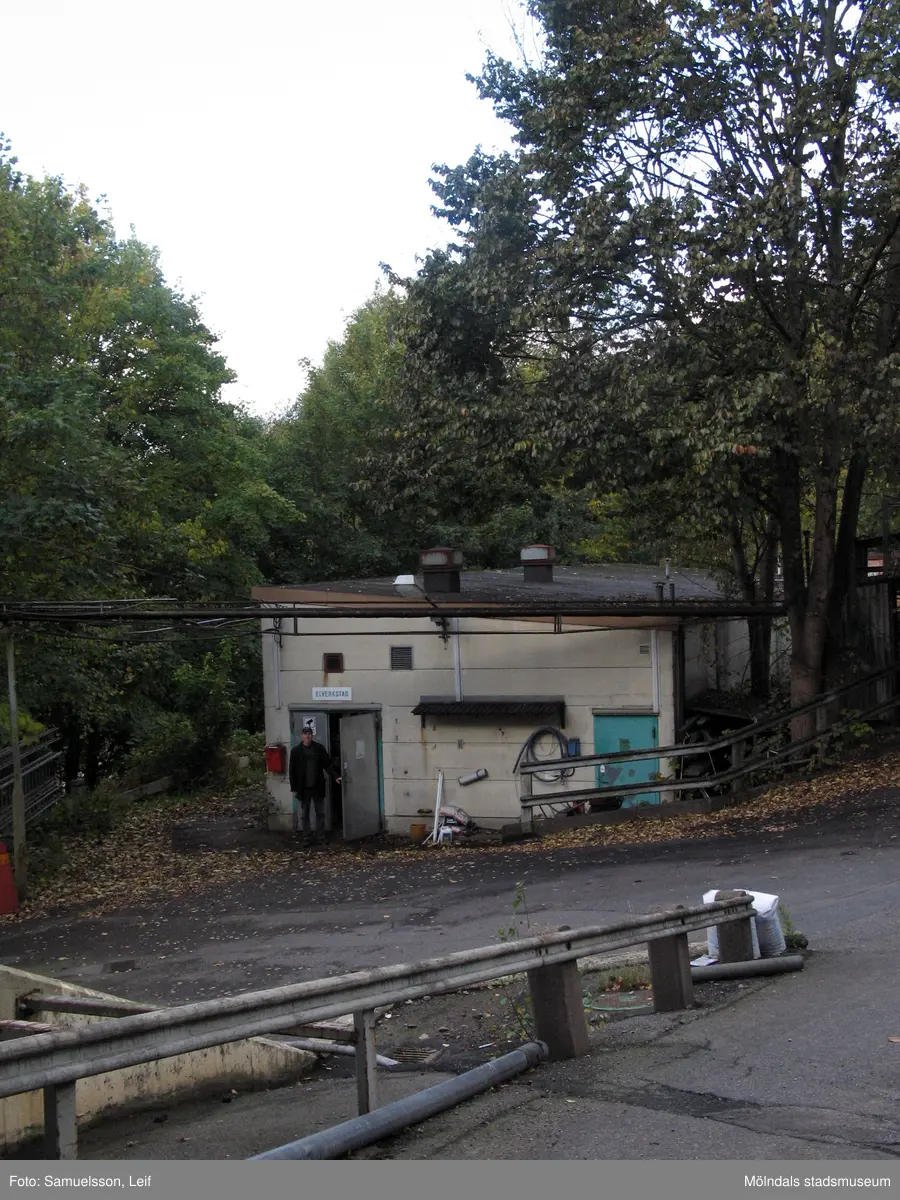 Elverkstaden vid Soabs industrianläggning i Mölndals Kvarnby, år 2007. En man står i dörröppningen. Anläggningen användes vid fototillfället av Hexion Speciality Chemicals Sweden AB.