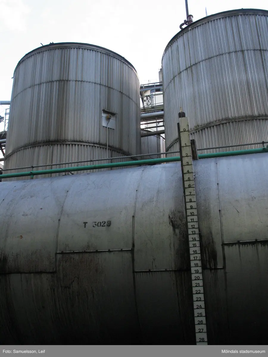 En tank och två cisterner vid Soabs industrianläggning i Mölndals Kvarnby, år 2007. Anläggningen användes vid fototillfället av Hexion Speciality Chemicals Sweden AB.