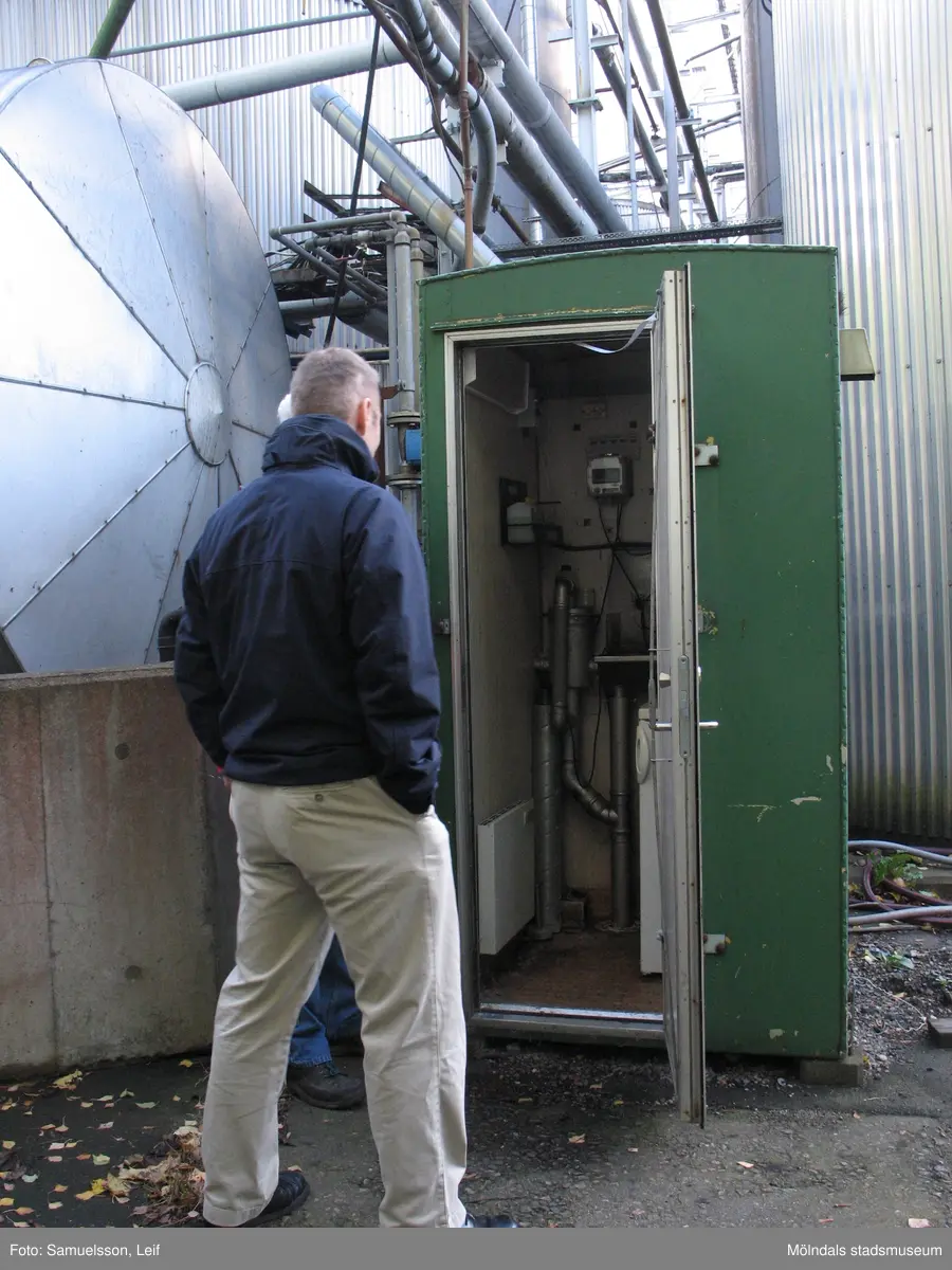 En man står vid öppningen till en mindre byggnad vid Soabs industrianläggning i Mölndals Kvarnby, år 2007. Anläggningen användes vid fototillfället av Hexion Speciality Chemicals Sweden AB.
