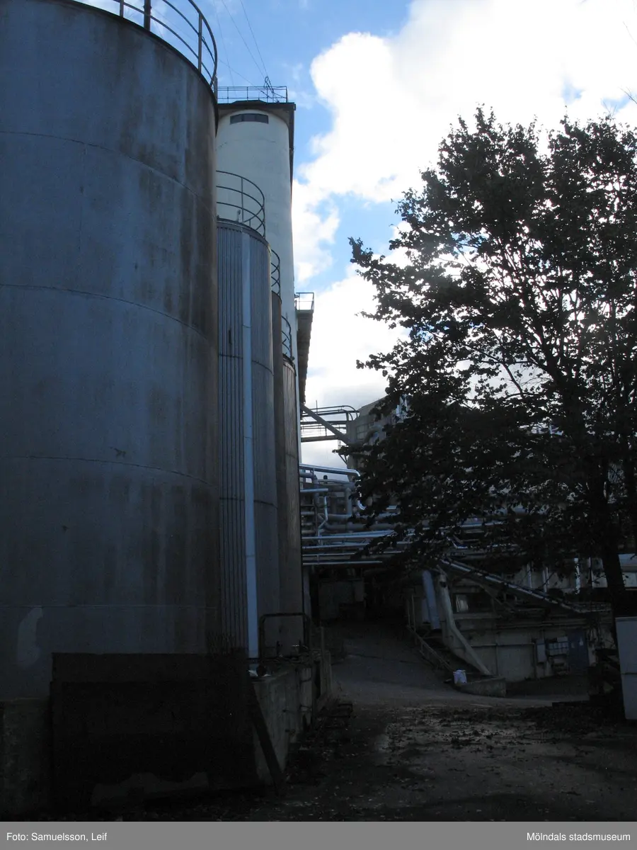 Cisterner i anslutning till silobyggnaden vid Soabs industrianläggning i Mölndals Kvarnby, år 2007. Anläggningen användes vid fototillfället av Hexion Speciality Chemicals Sweden AB.