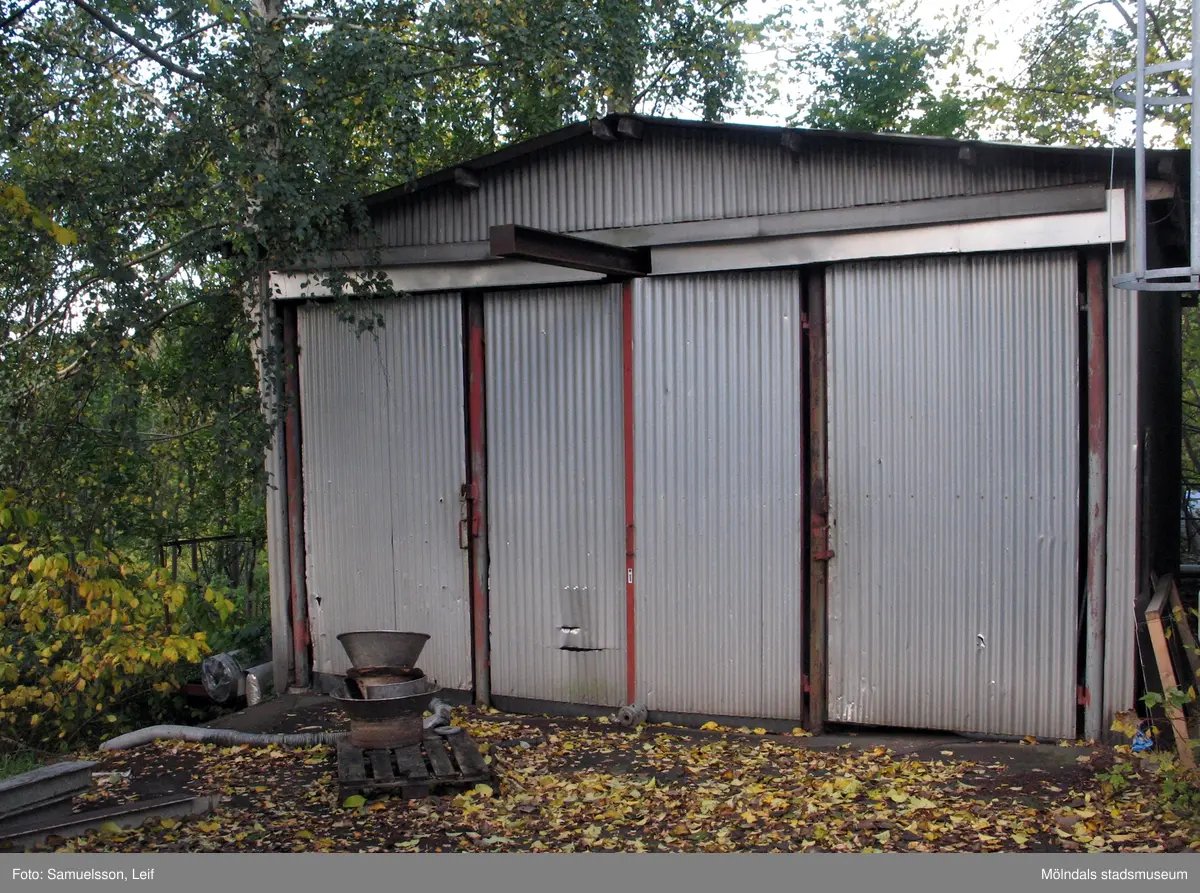Ett plåtskjul vid Soabs industrianläggning i Mölndals Kvarnby, år 2007. Anläggningen användes vid fototillfället av Hexion Speciality Chemicals Sweden AB.