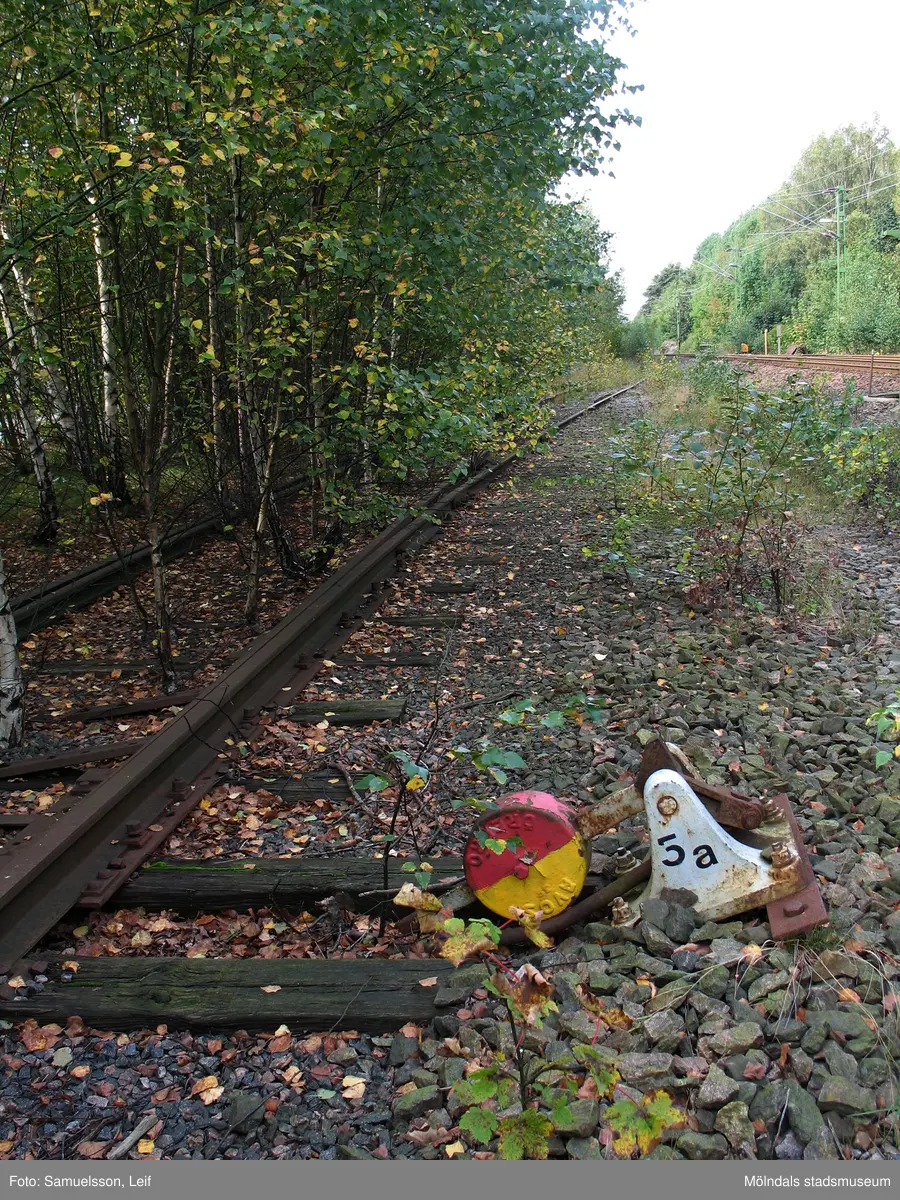 Titel: Övervuxet järnvägsspår med växel vid Soabs industrianläggning i Mölndals Kvarnby, år 2007. Anläggningen användes vid fototillfället av Hexion Speciality Chemicals Sweden AB.