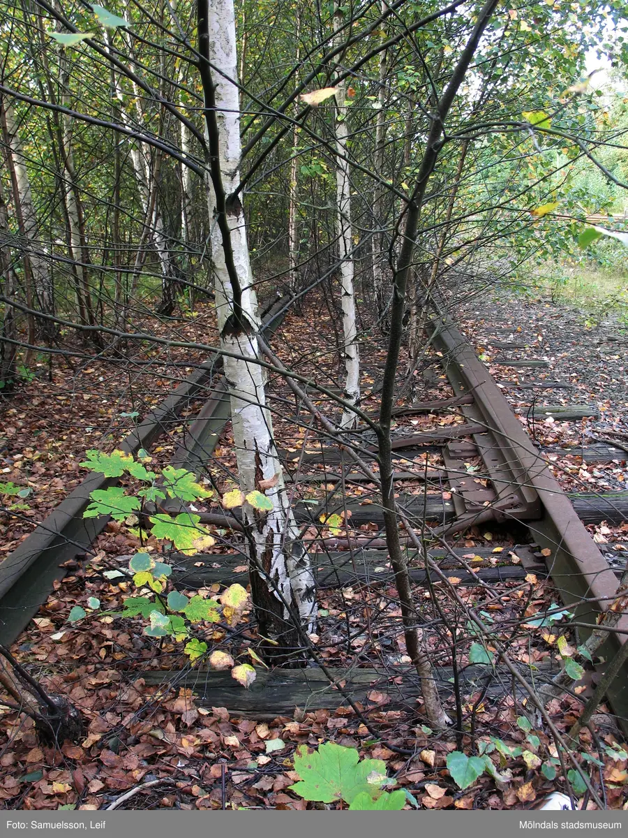 Övervuxet järnvägsspår vid Soabs industrianläggning i Mölndals Kvarnby, år 2007. Anläggningen användes vid fototillfället av Hexion Speciality Chemicals Sweden AB.