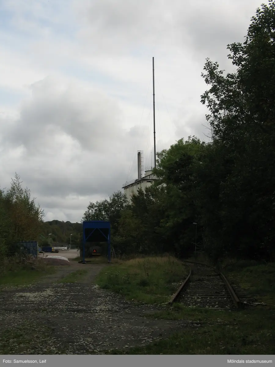 Soabs industrianläggning i Mölndals Kvarnby, år 2007. Till höger järnvägsspår. Bakom växtligheten skymtas silobyggnaden. Anläggningen användes vid fototillfället av Hexion Speciality Chemicals Sweden AB.