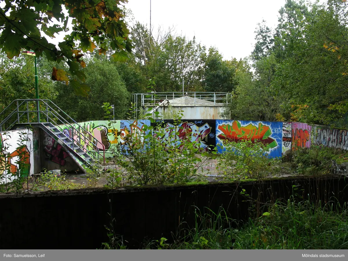 En betongkonstruktion, invändigt täckt med graffiti, vid Soabs industrianläggning i Mölndals Kvarnby, år 2007. Anläggningen användes vid fototillfället av Hexion Speciality Chemicals Sweden AB.