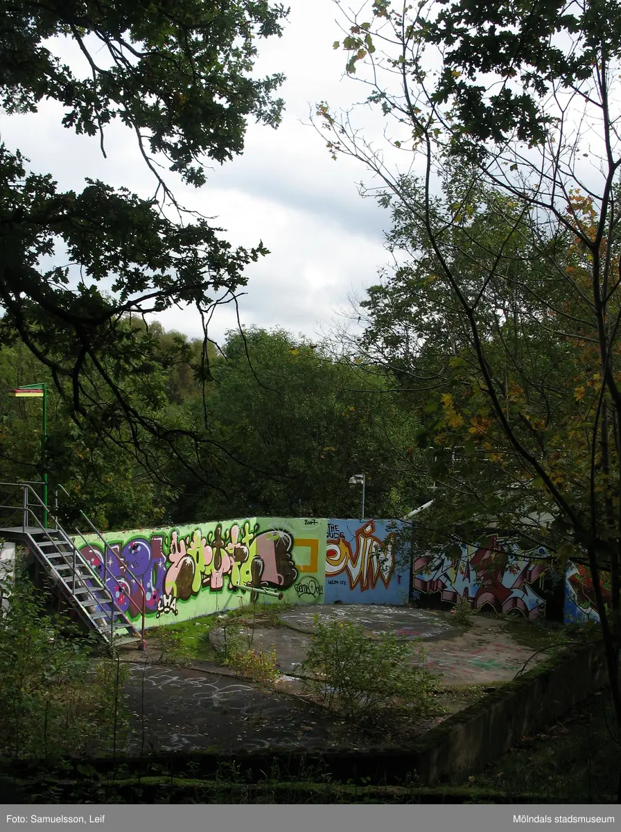 En betongkonstruktion, invändigt täckt med graffiti, vid Soabs industrianläggning i Mölndals Kvarnby, år 2007. Anläggningen användes vid fototillfället av Hexion Speciality Chemicals Sweden AB.