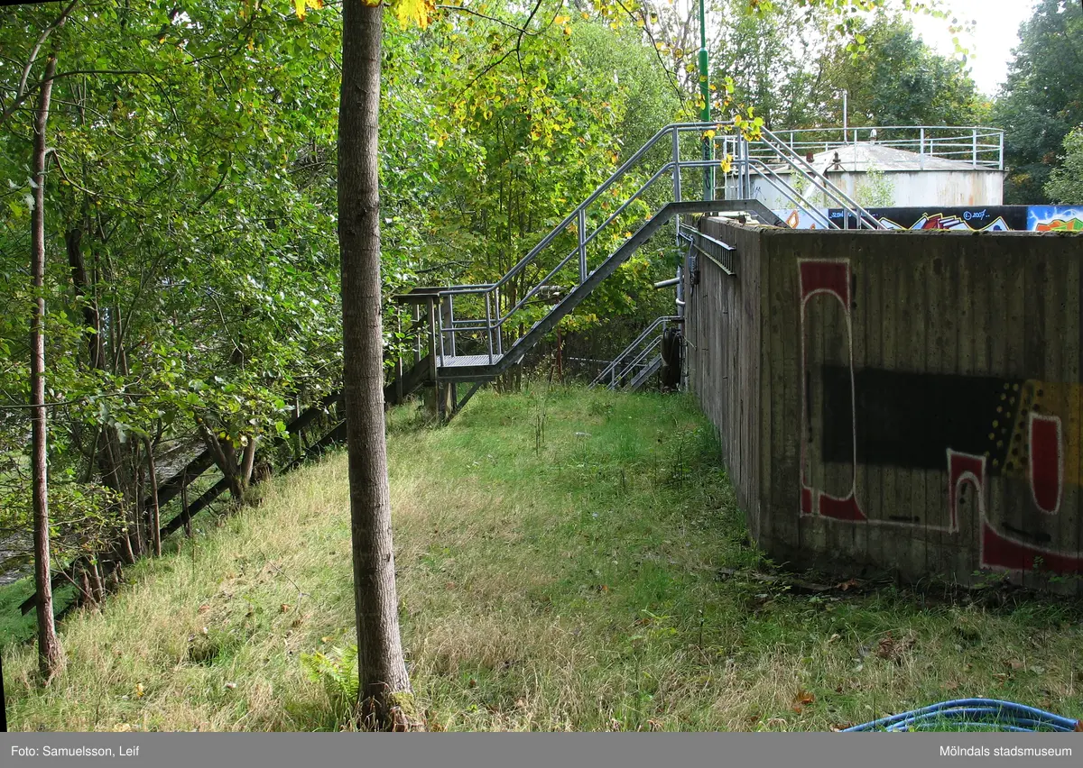 En betongkonstruktion med tillhörande trappa vid Soabs industrianläggning i Mölndals Kvarnby, år 2007. Anläggningen användes vid fototillfället av Hexion Speciality Chemicals Sweden AB.