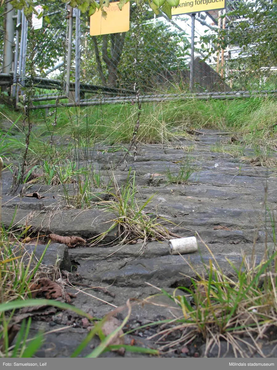 En äldre stenbelagd väg vid Soabs industrianläggning i Mölndals Kvarnby, år 2007. Anläggningen användes vid fototillfället av Hexion Speciality Chemicals Sweden AB.