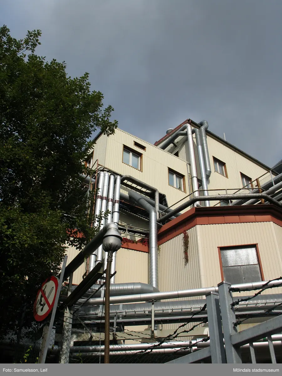Industribyggnad vid Soabs industrianläggning i Mölndals Kvarnby, år 2007. På utsidan av byggnaden löper flertalet rör. Anläggningen användes vid fototillfället av Hexion Speciality Chemicals Sweden AB.