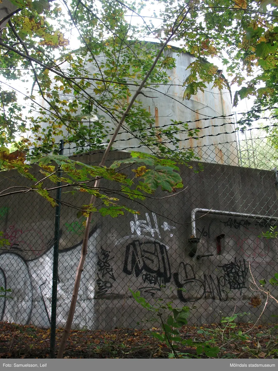 Närmast en betongkonstruktion och bakom den en cistern vid Soabs industrianläggning i Mölndals Kvarnby, år 2007. Anläggningen användes vid fototillfället av Hexion Speciality Chemicals Sweden AB.