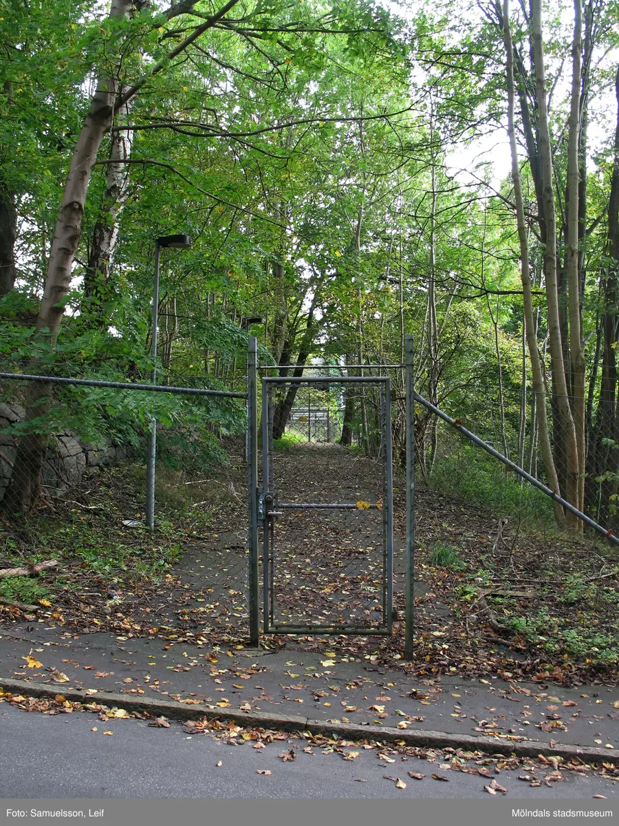Ett stängsel med grind vid Soabs industrianläggning i Mölndals Kvarnby, år 2007. Anläggningen användes vid fototillfället av Hexion Speciality Chemicals Sweden AB.