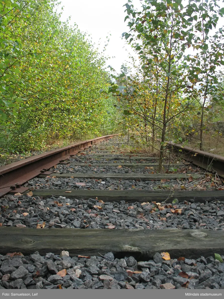 Övervuxet järnvägsspår vid Soabs industrianläggning i Mölndals Kvarnby, år 2007. Anläggningen användes vid fototillfället av Hexion Speciality Chemicals Sweden AB.