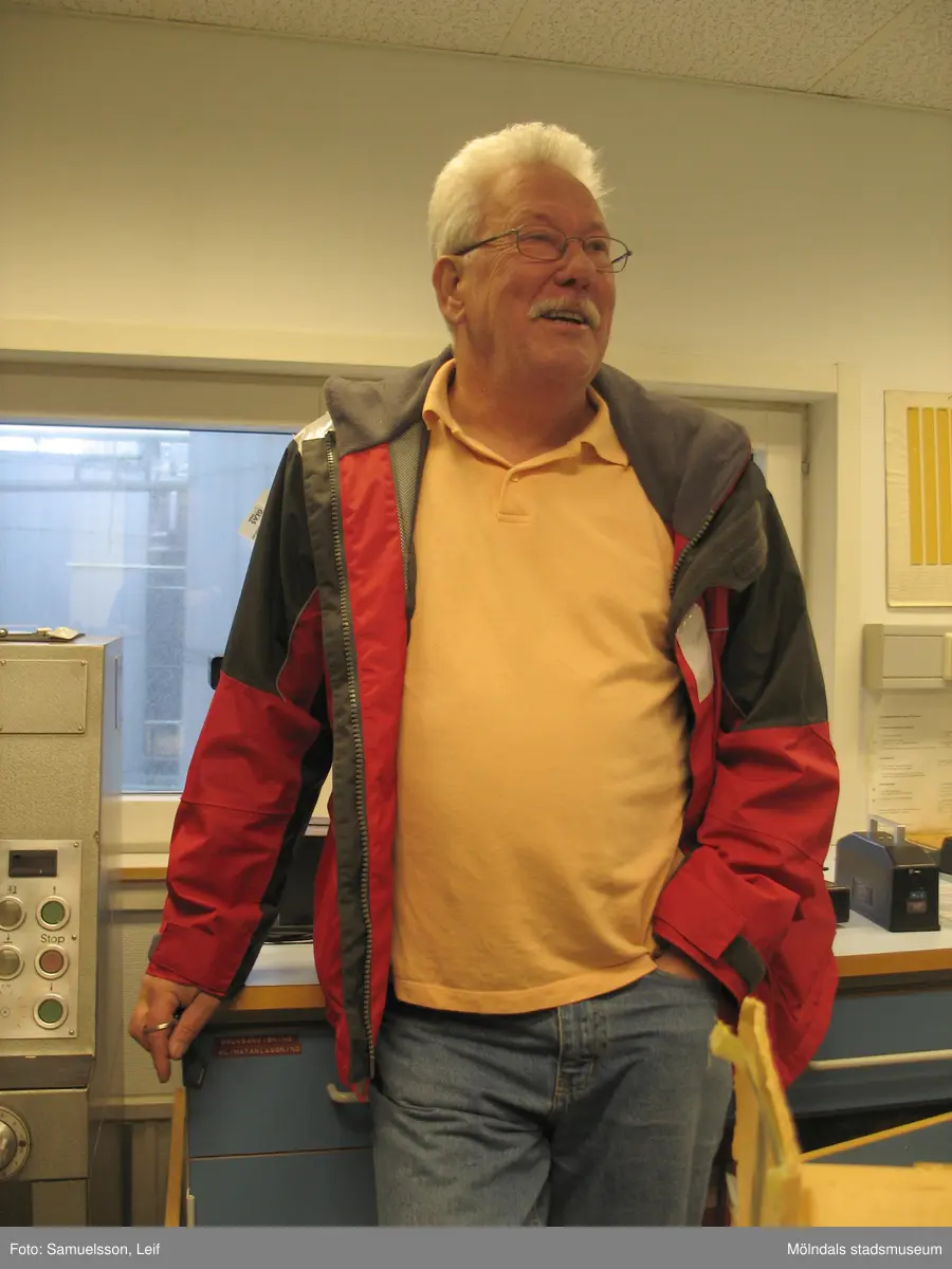 Porträtt av en man. Interiörfotografi från byggnad vid Soabs industrianläggning i Mölndals Kvarnby, år 2007. Anläggningen användes vid fototillfället av Hexion Speciality Chemicals Sweden AB.